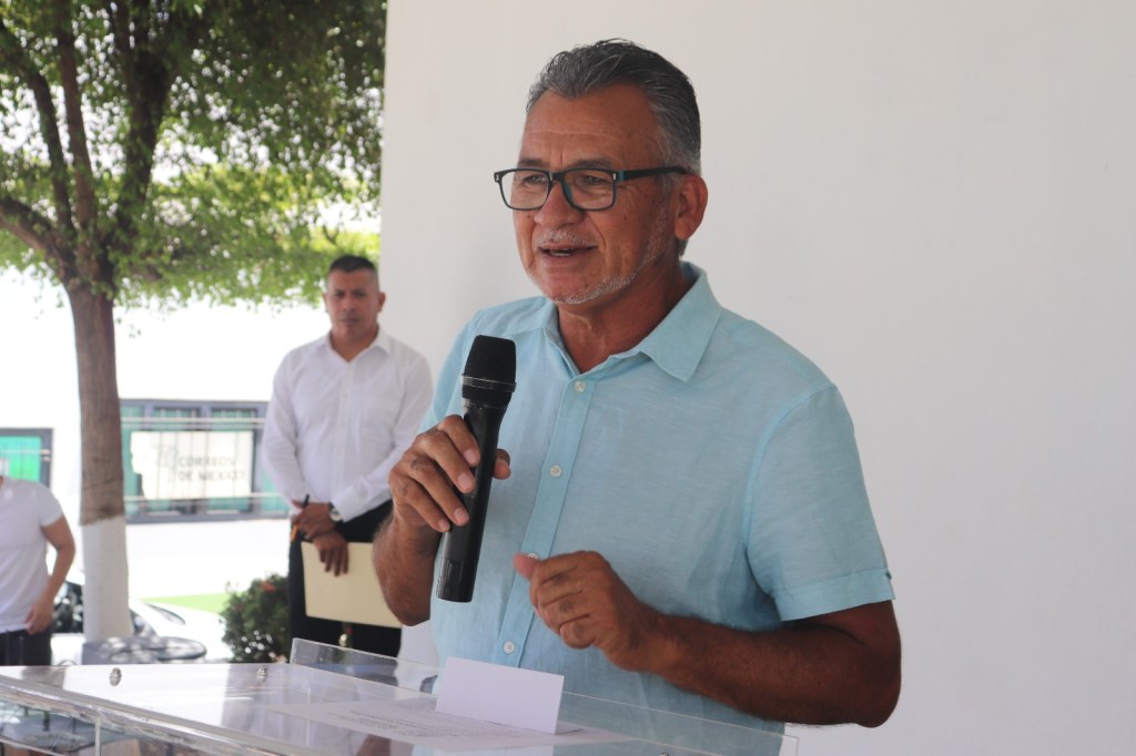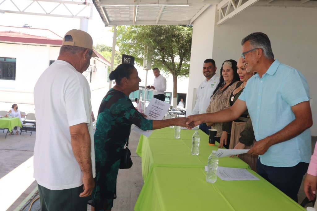 El presidente municipal de Buenavista, Sergio Báez Torres, encabezó la entrega de 90 escrituras del fraccionamiento La Huerta.