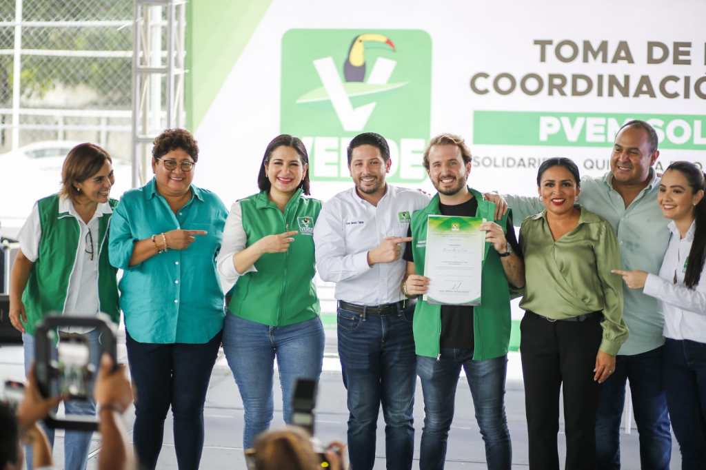 SASCAB Por cierto, el PVEM ya tiene dirigente en Solidaridad (Playa del Carmen), en la persona de Fernando Muñoz. A la toma de protesta del Comité Directivo Municipal asistieron diputados federales, locales, taxistas que integraron una marea verde de más de mil 500 personas reunidas en el domo deportivo del parque Lázaro Cárdenas, en la colonia Colosio. Ahí, el dirigente estatal del Verde, Renán Sánchez Tajonar destacó el trabajo de Fernando Muñoz, quien ha fortalecido al Verde en Solidaridad y lo ha convertido en la primera fuerza en Playa del Carmen. El nuevo dirigente fue arropado por las y los diputados locales, Estefanía Mercado, María José Osorio, Cristina Alcérreca y Yohanet Torres, así como Guillermo Brahms, al igual que la presidenta municipal de Puerto Morelos, Blanca Merari, y el diputado federal Juan Carrillo. Ahí se las dejo…
