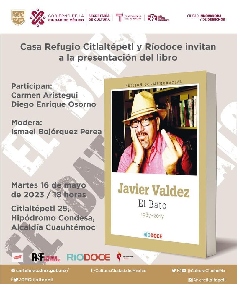 El Bato es el título del libro en homenaje al periodista Javier Valdez asesinado hace dos años en Culiacán Sinaloa.