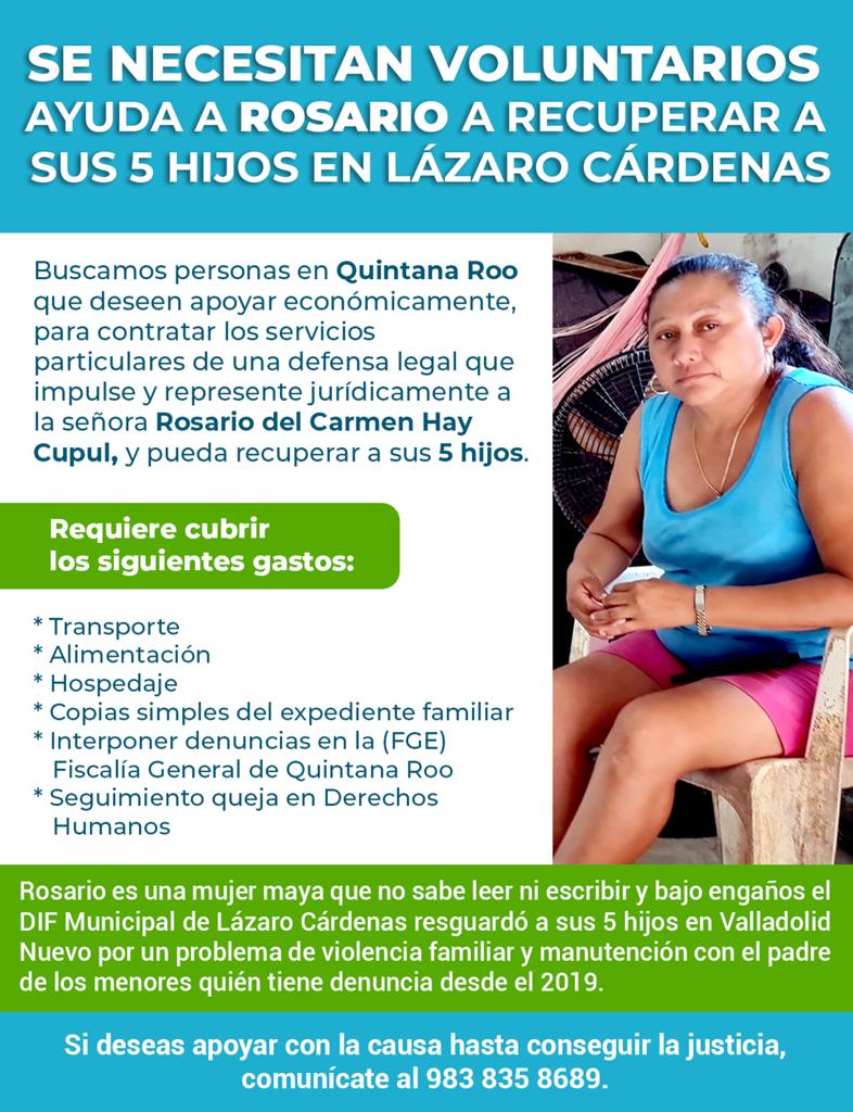 Mientras el presidente municipal de Lázaro Cárdenas, Emir Bellos Tun, se suma a la promoción política de una “corcholata” para la Presidencia de México y lo hace publico con un video en sus redes sociales, una desesperada madre de Valladolid Nuevo clama justicia, pues acusa que el DIF Municipal le quitó injustamente a sus cinco hijos. Quizá el caso hubiese pasado desapercibido, pero medios de comunicación independientes, han logrado conocer de manera detallada lo sucedido desde el 3 de mayo con la señora Rosario del Carmen Hay Cupul, quien denunció que el DIF Municipal de Lázaro Cárdenas le arrebató con engaños a sus cinco hijos, uno de los cuales se escapó de las instalaciones de la institución que preside Rubí Cruz y actualmente se desconoce su paradero. Rosario del Carmen cuenta con el apoyo de los abuelos paternos, quienes reconocen que su hijo ha sido un irresponsable en no ocuparse de los cinco pequeños, pero que el DIF decidió que la mamá no es apta para criarlos, pues no cuenta con recursos económicos. La afectada narró que llegaron las patrullas a su casa en Valladolid Nuevo y le dieron un papel para firmar, pero ella no sabe leer ni escribir, ella lo firmó y cuando acudió al juzgado le fueron quitados sus 5 hijos: Carlos Armando de 16 años; Ángel de Jesús de 13 (desaparecido en el DIF de Lázaro Cárdenas), Rudy Armando de 7, Rosario Magdalena de 4 y Máximo Felipe de 2 años. Asesorada por abogados voluntarios, doña Rosario inició una queja en contra de la presidenta del DIF del municipio de Lázaro Cárdenas, toda vez que la Procuradora de Protección de Niños, Niñas, Adolescentes y la Familia del municipio no es autoridad competente para retirarle la guarda y custodia o suspender la patria potestad; además le fue violado su derecho de acceso a la justicia pues no tuvo traductor. La defensora dijo que las autoridades violaron el proceso, y en complicidad con el agresor, despojaron a esta mujer de sus hijos, ignorando que el agresor ha sido denunciado por violencia, pues Rosario sufrió mucha violencia y hoy se encuentra viviendo en casa de sus suegros. Ayer, alrededor de 20 personas con pancartas en manos se manifestaron a las afueras de la delegación de Valladolid Nuevo, para exigir que la señora Rosario Hay Cupul recupere a sus cinco hijos, pues desde hace dos meses no los ha visto, toda vez que quedaron en poder de su exesposo, quien ganó la custodia al argumentar que esta mujer padecía de problemas psicológicos. Ahora sí, es necesaria la intervención de Derechos Humanos, la XVII Legislatura, el DIF Estatal, pero de primera instancia el que debe de intervenir es el Instituto Quintanarroense de la Mujer (IQM) que está a cargo de María Hadad Castillo. Ahí se las dejo…