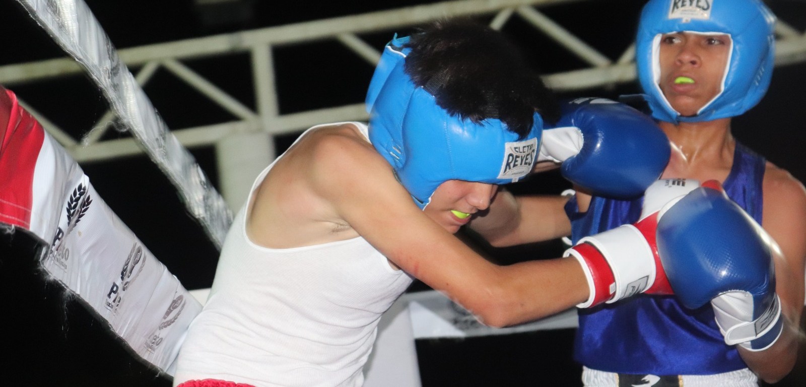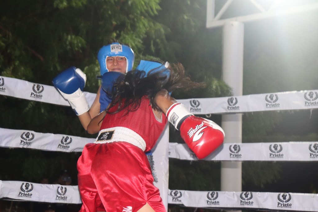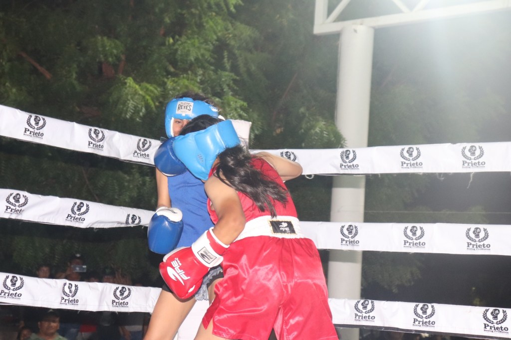 También hubo pelea de mujeres: Johana Equihua arrasó a Estrellas Moreno y tuvieron que detener el combate en el primer round. Ambas muchachas son de Buenavista y la afición les reconoció el esfuerzo a través del aplauso.