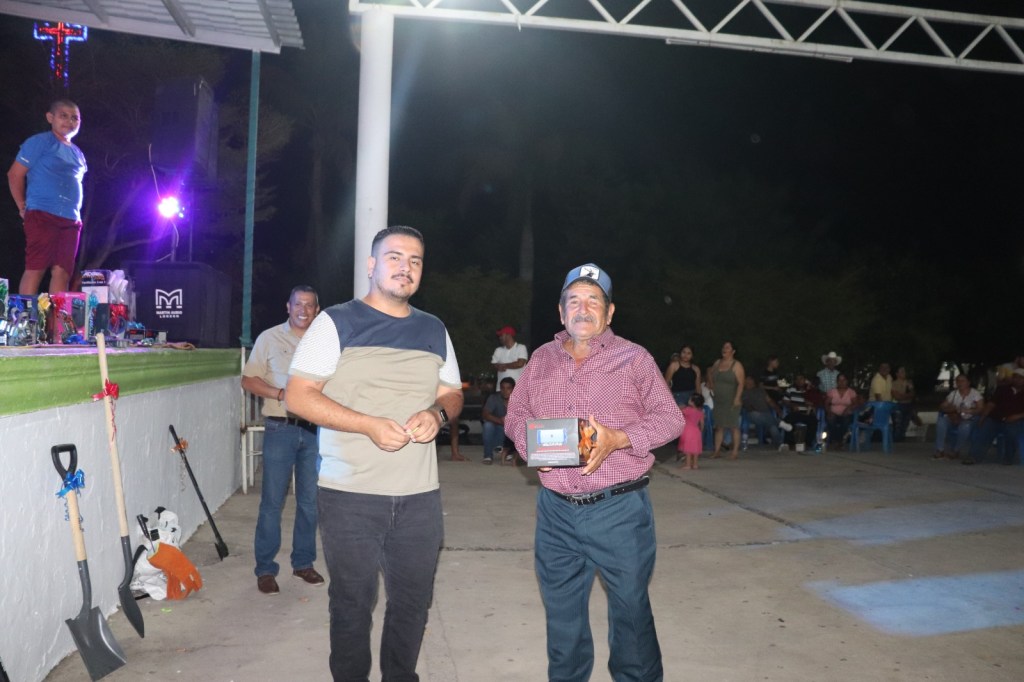 Las familias disfrutaron de la música y se emocionaron con la rifa de palas, picos, ventiladores, guantes, taladros, martillos, pulidoras, linternas, guadañas, entre otras cosas de utilidad. El presidente municipal, Sergio Báez Torres, fue sacando los números de los ganadores mientras que el Secretario del Ayuntamiento, el maestro en Derecho, Héctor García Ruelas y Emigdio Soriano Gutiérrez, de enlace del Migrante, entregaron los premios.