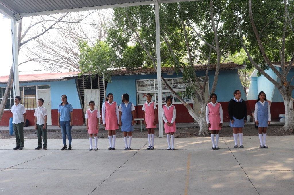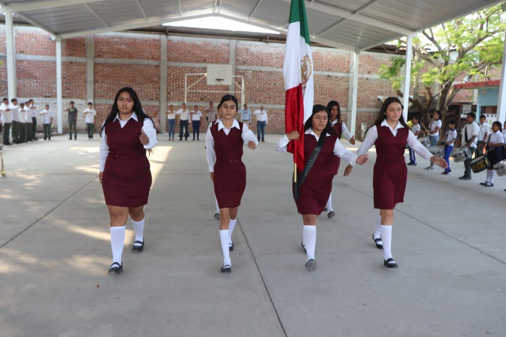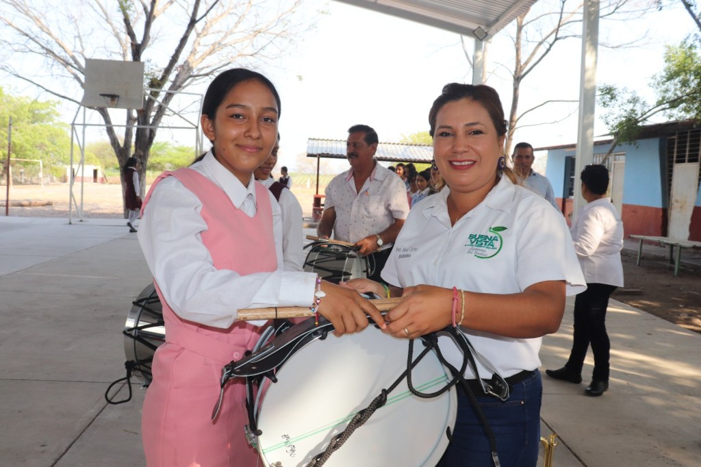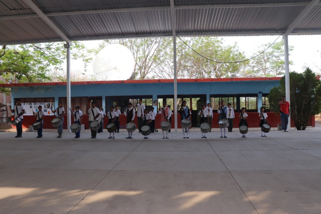 Después se rindieron los honores a la bandera y los presentes entonaron el himno nacional, para luego dar paso al mensaje del presidente municipal Sergio Báez Torres, quien explicó que su presencia fue para entregar los instrumentos musicales para la banda de guerra.