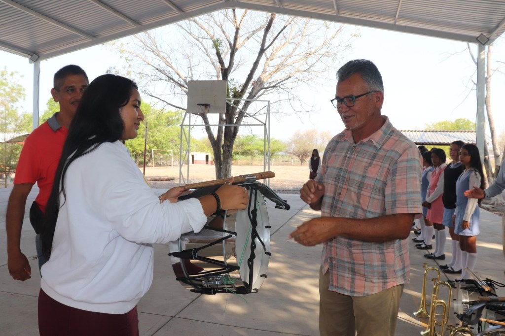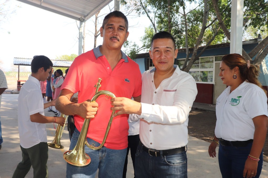 Como acto final las autoridades municipales entregaron a los alumnos y maestros los instrumentos para que la banda de guerra de la 18 de marzo siga engalanado los actos cívicos.
