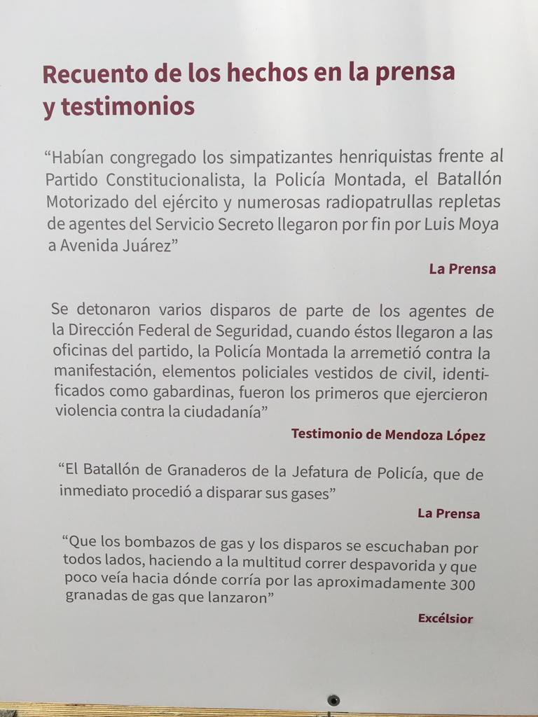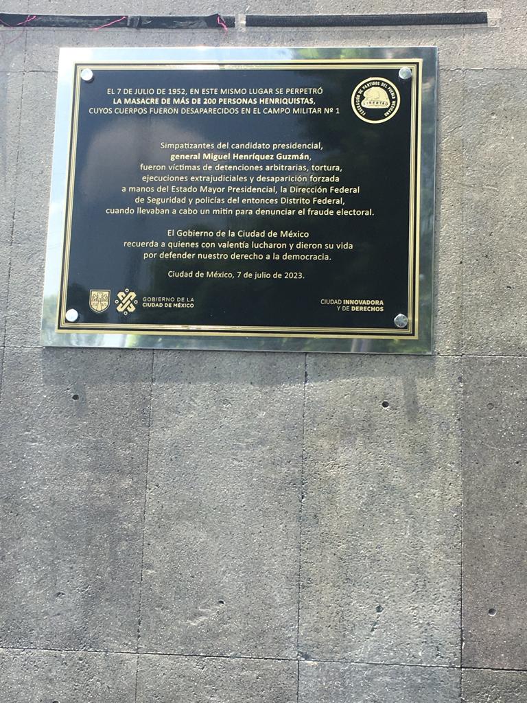 71 años después el nieto del general Miguel Henríquez Guzmán, Ignacio Miguel Estrada Henríquez, logró después de varios intentos que el gobierno de la Ciudad de México pusiera una placa conmemorativa y montara una exposición de aquella masacre.