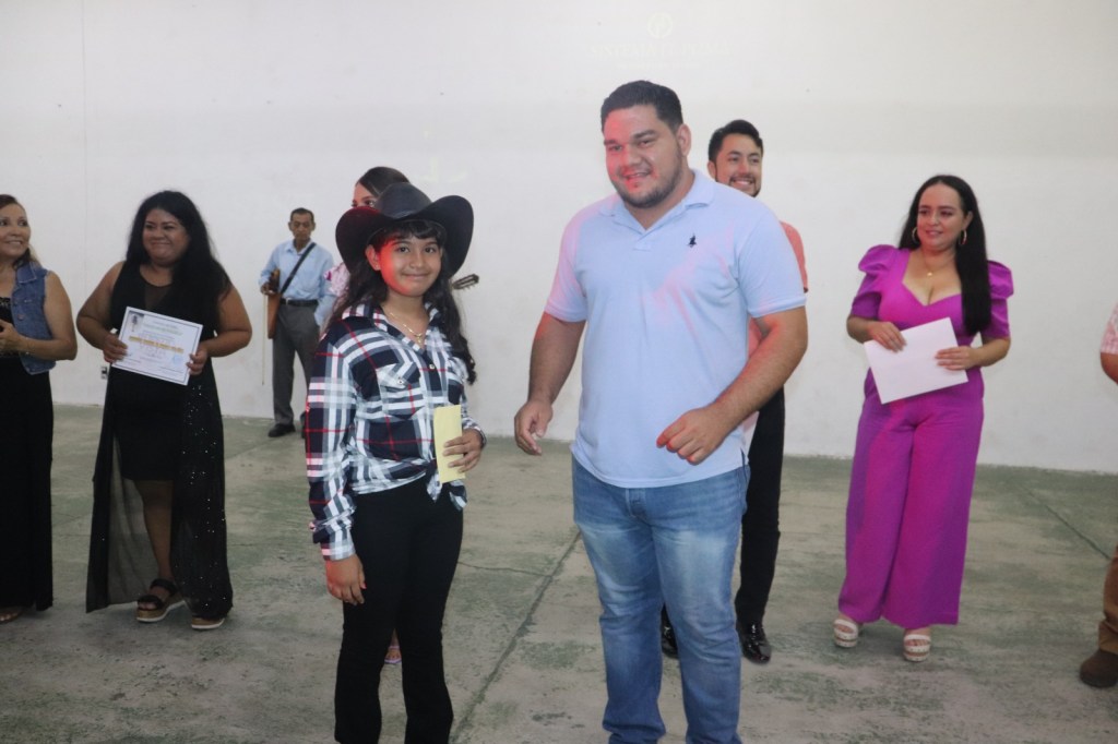 El tercer lugar correspondió a la niña Yunuen Amayrani Torres Sandoval, quien no podía creer haber ganado mil pesos que se lo entregó el tesorero municipal, el contador Iván García Reyes.