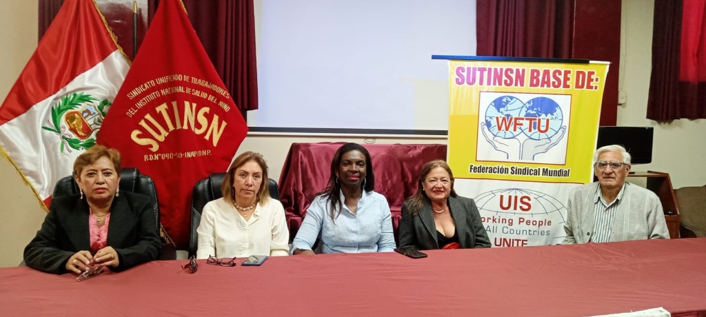 • En un evento realizado en Perú, la Federación Sindical Mundial (FSM), la Unión Internacional de Sindicatos de Servicios Públicos y Afines (UISP) y sindicatos de Ecuador, Colombia, Chile y Perú demandaron al Gobernador, José Ricardo Gallardo Cardona, que cese el acoso contra la secretaria de tesorería y fundadora del Sindicato Independiente de Trabajadores y Trabajadoras del Gobierno del Estado (SITTGE), Francisca Reséndiz Lara, y sus integrantes.