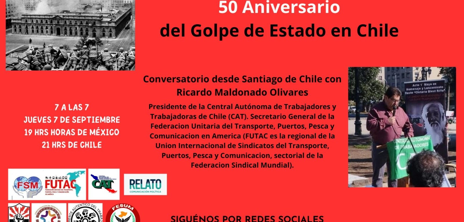 Dicho Conversatorio se organizó con motivo del medio siglo del golpe de estado de Augusto Pinochet contra el gobierno democrático y progresista de Salvador Allende. Aquel 11 de septiembre de 1973, con bombardeos, terror y represión, inició la larga noche del neoliberalismo en América Latina. Ricardo Maldonado, dirigente sindical de los transportistas chilenos y de la Unión Internacional de Sindicatos del Transporte de la Federación Sindical Mundial, conversó con medio centenar de cuadros sindicales mexicanos sobre la experiencia del golpe de estado, la larga dictadura de Pinochet y la situación actual del país sudamericano.