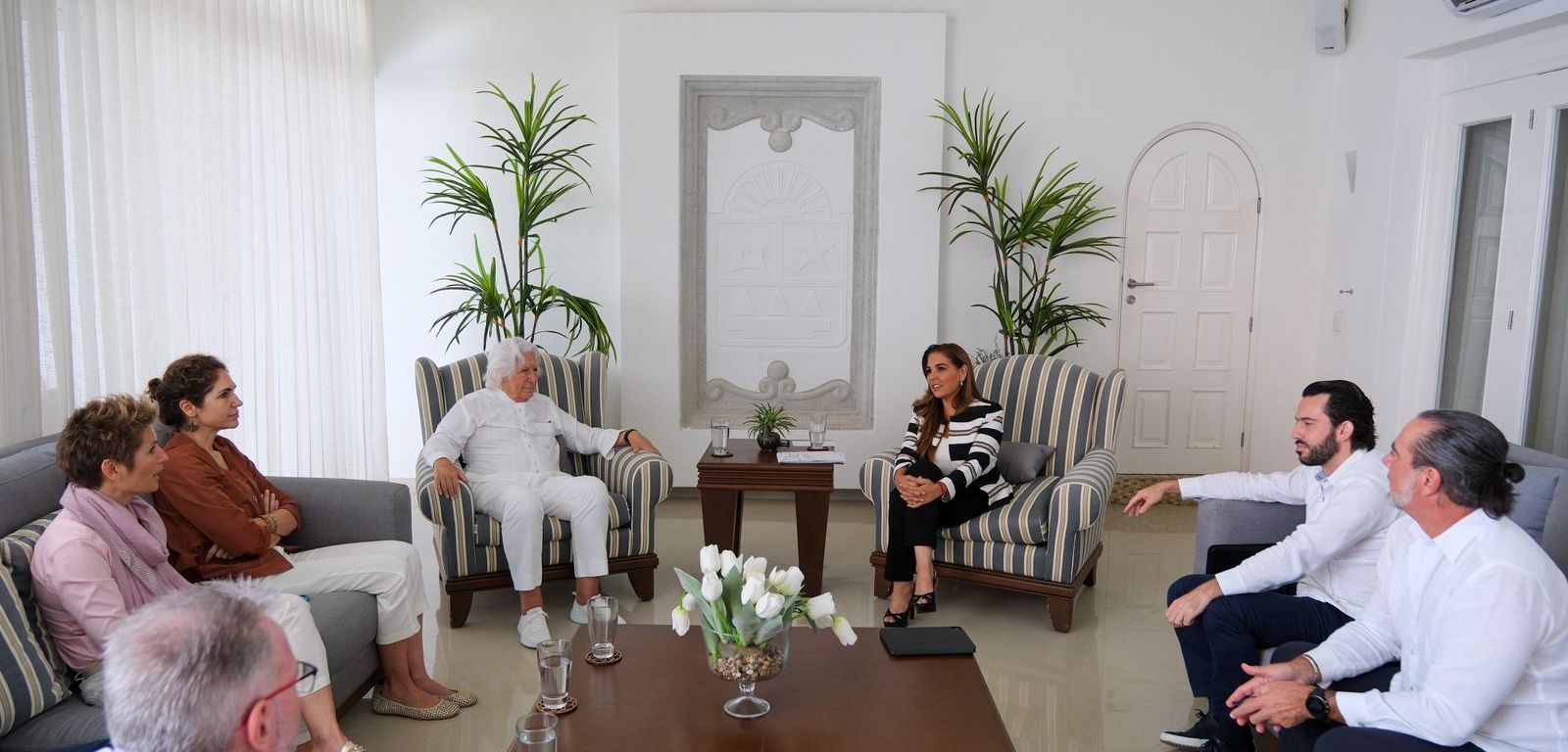Cancún, 26 septiembre.- La gobernadora Mara Lezama Espinosa sostuvo hoy una reunión con integrantes del Grupo Iberostar en la que revisaron el avance en proyectos a futuro, con el interés de mejorar las condiciones de vivienda para sus colaboradores y programas sociales para una mejor calidad de vida que buscan no solo dar la mejor experiencia al turista sino también a sus empleados.