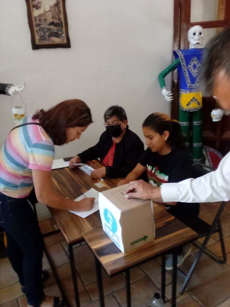 El Observatorio Sindical y Ciudadano fue presidido por la Lic. Francisca Reséndiz Lara, fundadora del SITTGE y miembro de la Unión Internacional de Sindicatos de Servicios Públicos (UIS) de la Federación Sindical Mundial (FSM), que agrupa a más de 110 millones de afiliados. Nuestra labor fue visitar las casillas electorales en los distintos puntos de la capital oaxaqueña. Al mediodía el calor estuvo sabroso y el entusiasmo en las urnas también: se colocaron en casas particulares, dónde las activistas y organizadoras de la elección, padrón en mano, otorgaron las boletas y el crayón para tachar la boleta según su preferencia. Improvisaron, con cartón forrado de blanco, el espacio para el voto secreto.
