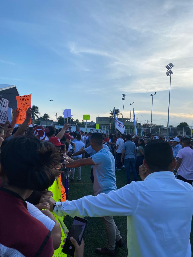 En la unidad deportiva de la colonia Luis Donaldo Colosio en Playa del Carmen se platicó con la coordinadora de los comités en defensa de la Cuarta Transformación.