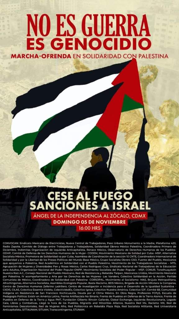 El 5 de noviembre en la capital del país se realizará la tercera marcha para detener el genocidio en Palestina.