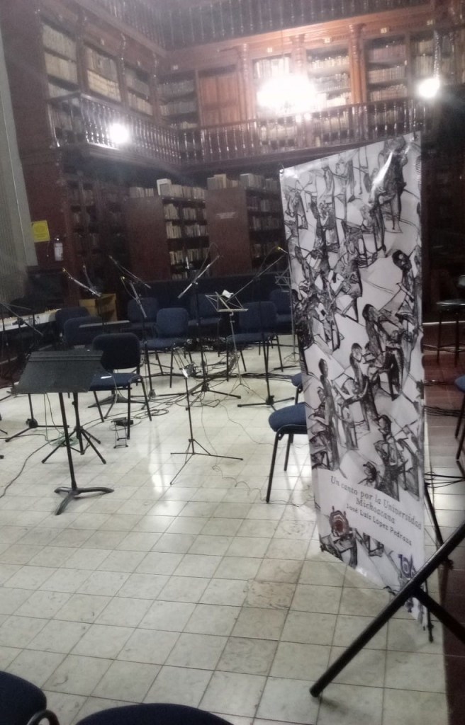 Se grabó en vivo el álbum “Un Canto por la Universidad Michoacana” con la Orquesta de Cámara de la Universidad Michoacana (OCUM), bajo la batuta de José Luis Gálvez; pero, además, participó en los coros las hermosa voz de Rocío Vega, esposa del cantautor López Pedraza, a quien la presentó no sólo como esposa sino como equipo musical. Así que interpretó una de las 10 obras musicales que tendrá el nuevo disco (México soy yo).
