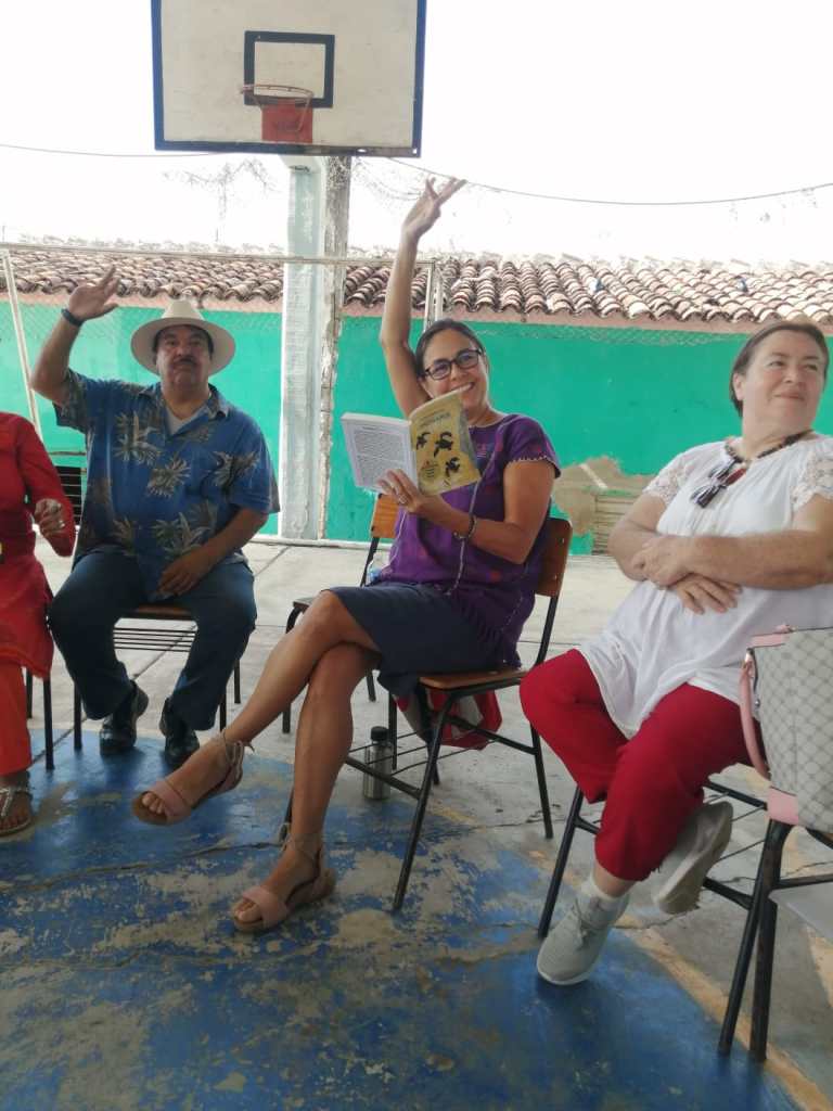 Todo pintaba bien hasta que llegamos a la Noria, y nuestra infatigable guía Silvia Michel nos dio la mala noticia: la plaza del pueblo, donde se había preparado nuestro evento, la tenía acaparada un mitin político con presidentes municipales y sus lamentables acarreados. Y tendríamos que cambiar nuestro evento a la escuela secundaria del pueblo.