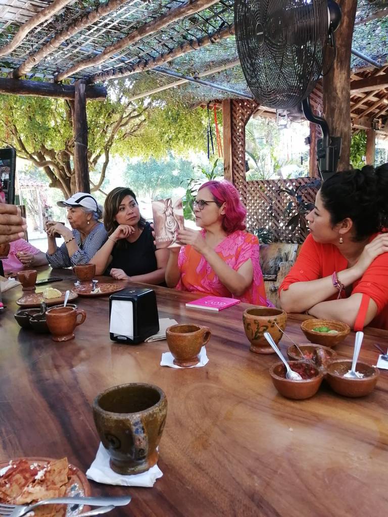 El segundo día del Encuentro de Escritoras Sinaloenses fue inolvidable por razones varias. Escritoras, lectoras y algún lector colado llenamos un autobús turístico rumbo a La Noria. En el trayecto Silvia Michel nos contó de los proyectos de turismo rural en los que lleva años laborando, impulsando emprendimientos como el Festival del Pie de Plátano en Copala y el del Tamal en La Noria. Todas coincidimos en el gusto de dar visibilidad a este tipo de proyectos que promueven la autonomía económica de pequeños comerciantes en el ámbito rural.