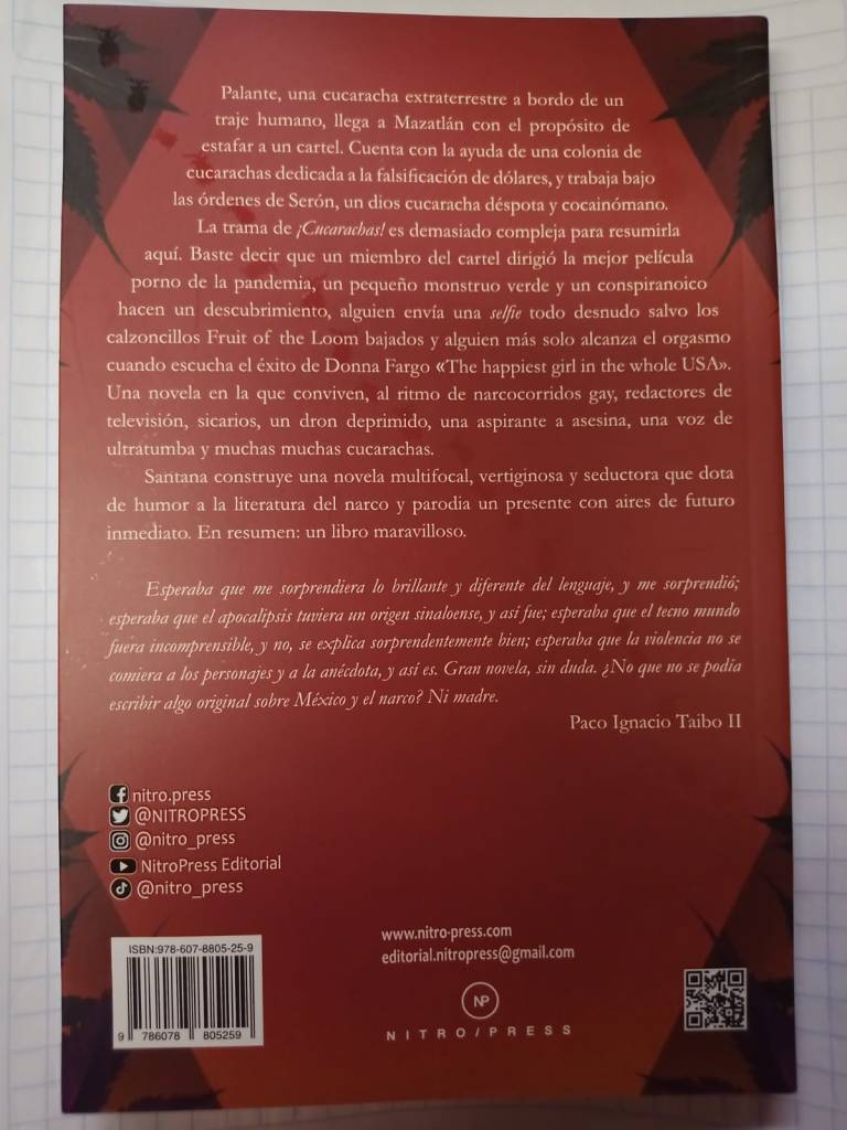 Una novela de Víctor Santana.Que aborda lo que ya otros trataron, pero en palabras de Paco Ignacio Taibo II:“¿No que no se podía escribir algo original sobre México y el narco? Ni madre”.