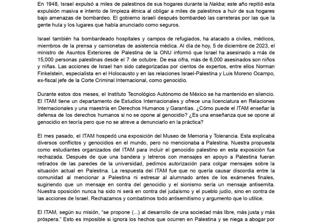 Carta de estudiantes de ITAM denuncian censura