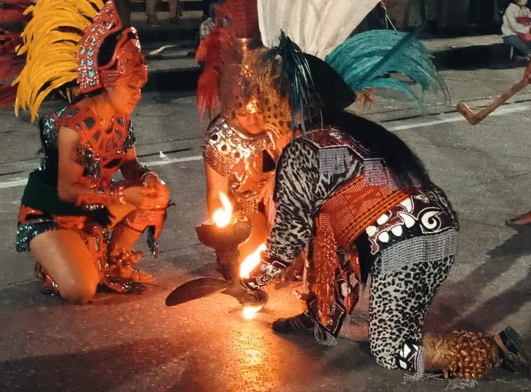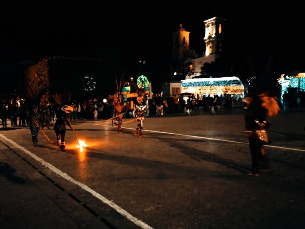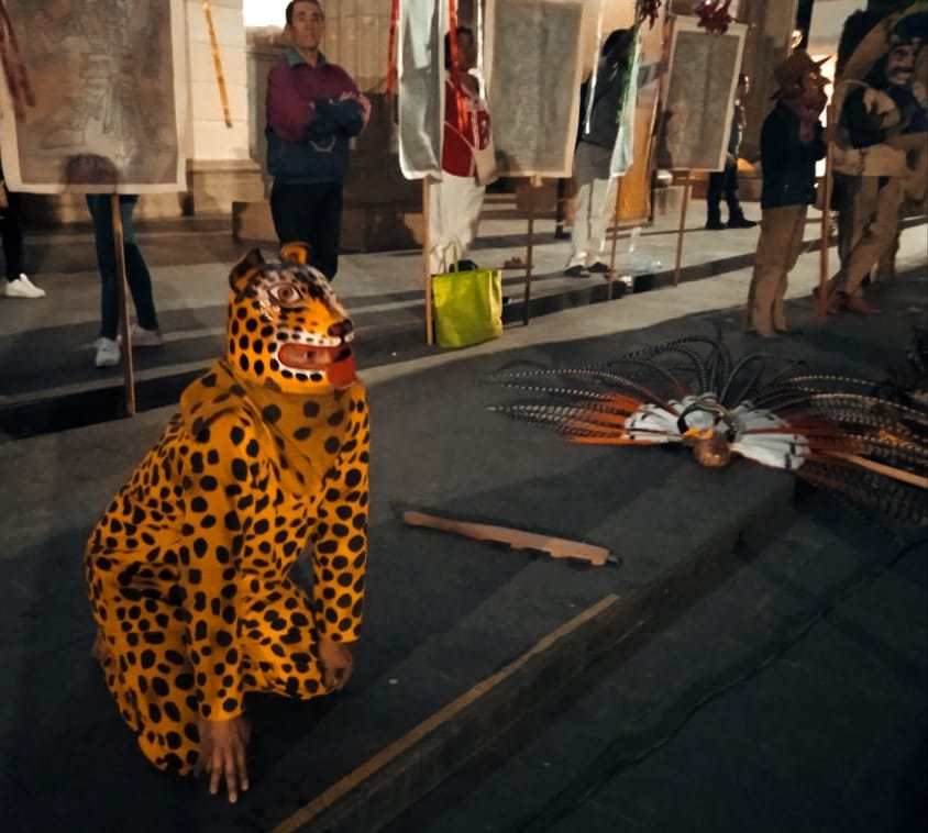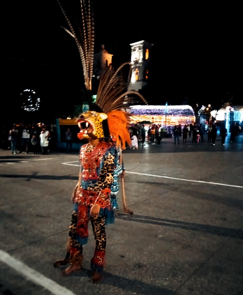 El antropólogo y fotógrafo Benito Jiménez Patrón recibe el invierno en la plaza de armas de Chilpancingo donde se celebró el juego de pelota mesoamericano llamado Huehueajahuilihuitl.