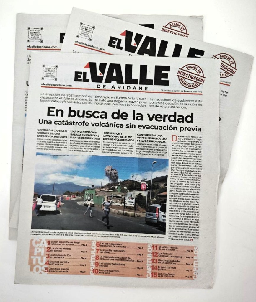Contribuir a que se conozca la verdad de por qué no se evacuó a la población antes de la catástrofe volcánica de La Palma y que este fallo no se repita en el futuro. Es el objetivo central de la revista gratuita ‘En busca de la verdad’, una publicación impresa en formato periódico y elaborada por ElValledeAridane.com, la web editada por la asociación Tierra Bonita gracias al libro Las otras historias del volcán. Tiene una tirada inicial de 20.000 ejemplares, que se distribuyen de forma gratuita.
