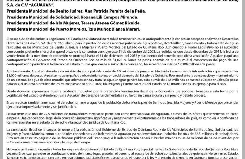 Hasta ahora están como “congelados”. Tanto en Capa, Gobierno del estado y el Congreso -ante el inicio de la guerra legal de Aguakán por el retiro de la concesión hasta 2053-, guardan silencio.