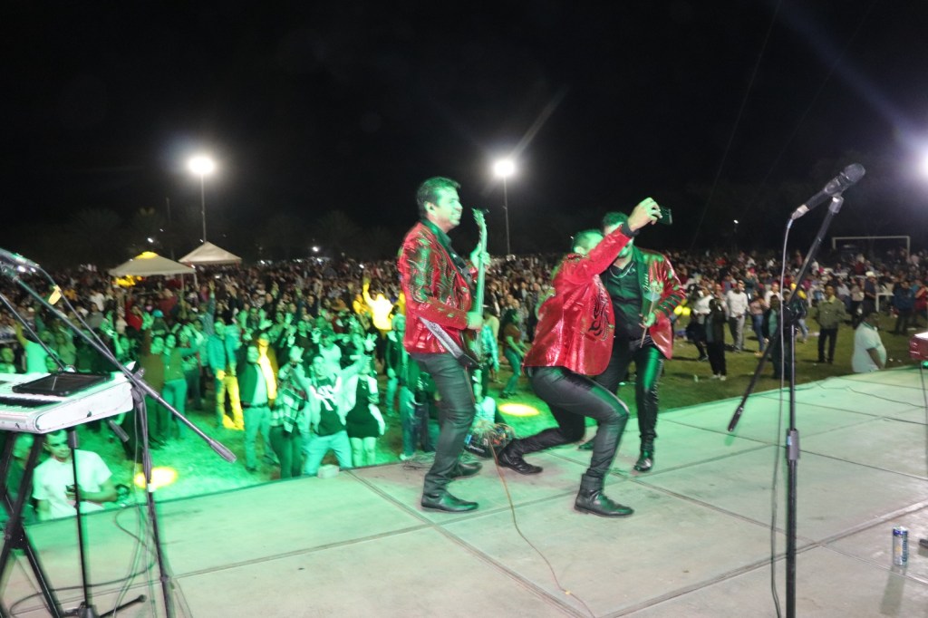 La cancha de fútbol de la Unidad Deportiva resultó insuficiente para la multitud que no paró de bailar al ritmo de Barrio Exclusivo, de Alfa 7 y Mi Banda el Mexicano, de Germán Román, hasta altas horas de la madrugada.
