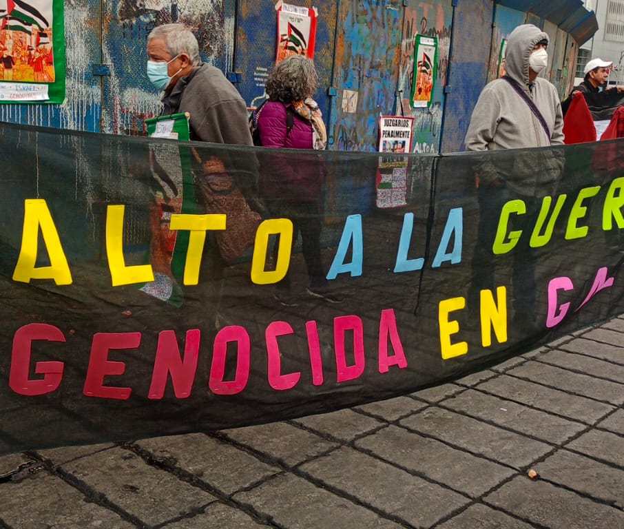 Al frente de las protestas estuvieron integrantes de la Coordinadora de Solidaridad con Palestina en México. Exigieron el rompimiento de relaciones diplomaticas con Israel.