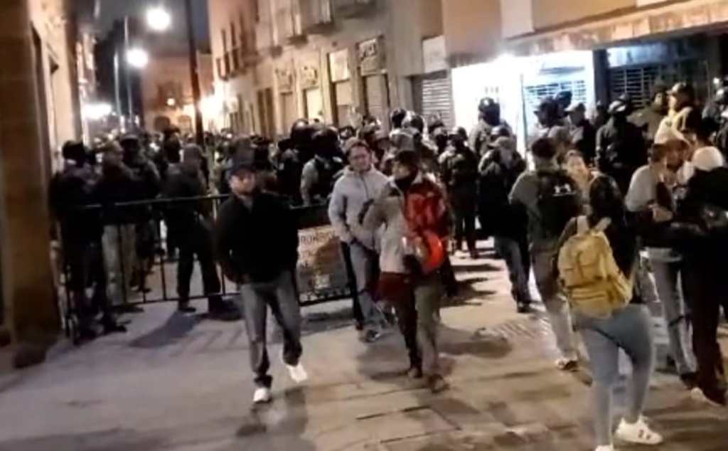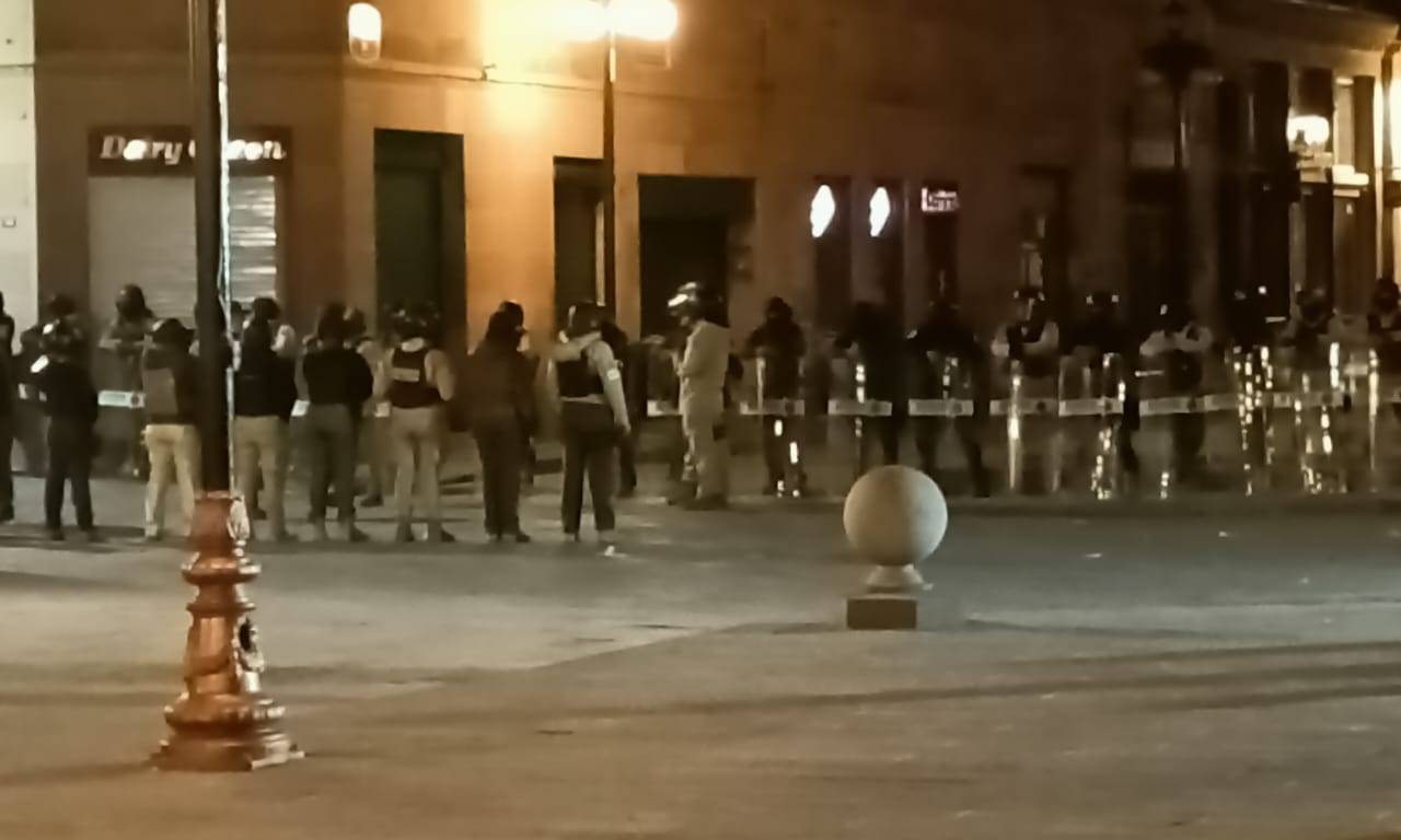 Los elementos policiales con navajas desgarraron el toldo que tenían instalado, arrancaron las pancartas, se llevaron la estructura, mesa y sillas que tenían, y por su número superior se impusieron a las y los manifestantes, replegándolos con sus escudos hacía la calle de Cinco de Mayo, para sacarlos del referido lugar, destacado que no hubo presencia de observadores de la Comisión Estatal de Derechos Humanos que atestiguaran el operativo policial.