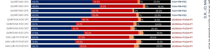 La ventaja que le pueda quedar a las candidatas y candidatos del sur de la alianza “Seguimos haciendo historia”, es que se divida el voto opositor, es decir, una elección a tres fuerzas, que favorecería a Yensunni.