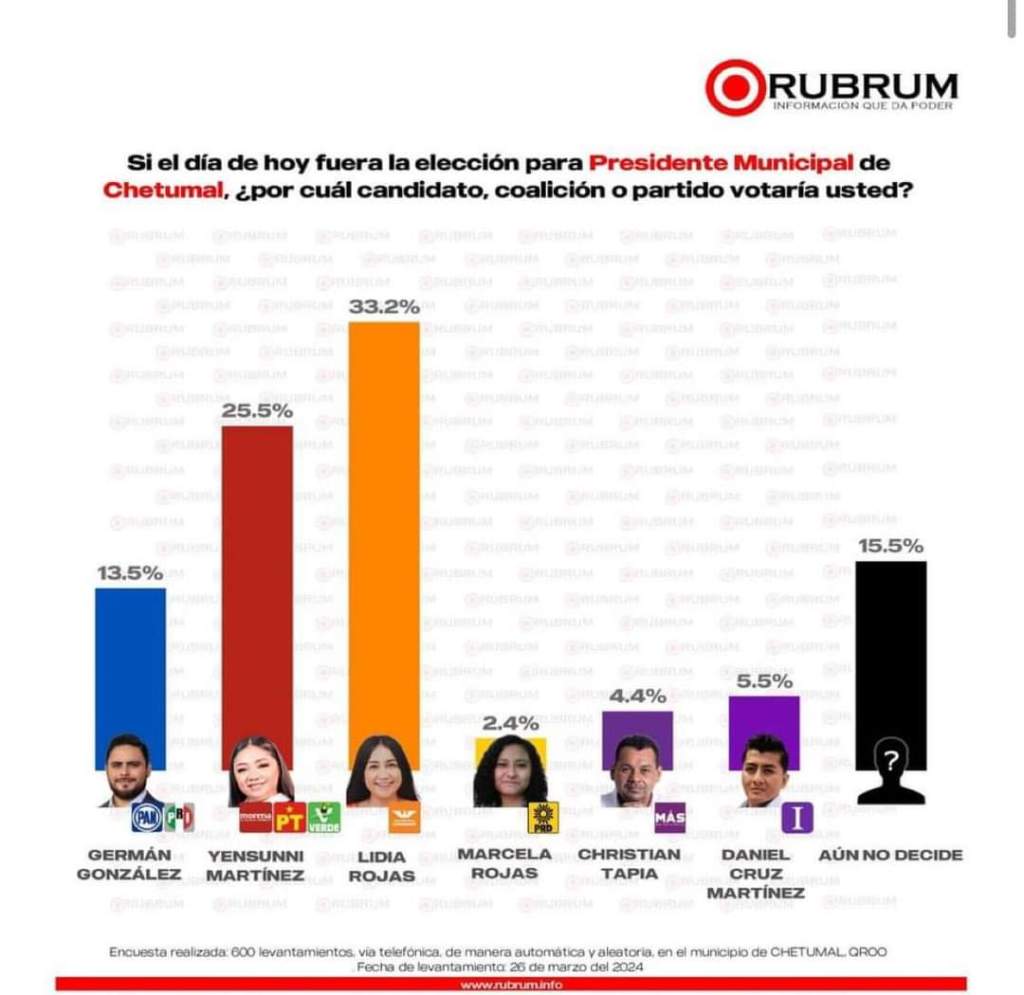 Pero ya empezaron a asomarse encuestas que la ubican en segundo lugar, por debajo de la candidata naranja Lidia Rojas y otras en primer lugar, pero seguida a escasos cuatro puntos del candidato del PRIAN, Germán González.