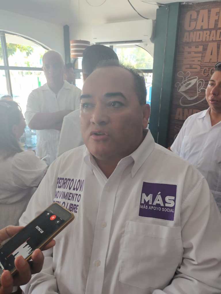 Subrayó que tiene mucha gente que nos apoya y aprecia, ¡claro que sí!, vamos a trabajar con austeridad, con mucho cariño y mucha fuerza, tenemos mucha gente que nos apoya. Hay grupo, gente que trabajando a mi favor para lograr el objetivo. Somos un partido chico local, no tenemos mucho presupuesto. Sin embargo, es poco lo que le dan al partido, es poco lo que nos toca los candidatos, refirió. Destacó que enfrentarse a Lili Campos no es una pelea, una contienda, una fiesta electoral saludable; el enfoque es al desarrollo urbano y activar el turismo para que no dejemos de ser el primer municipio a nivel nacional en ese aspecto. Considero a Lili una señora con mucha vida política, preparada que ha tenido bien a su pueblo, a su gobierno; es simple, no hay candidato chico ni candidato grande. Somos los seres humanos con la misma pasión de querer mejores servicios. Yo me dedico a promover el voto, pedir a la gente que vote por Pedro Lovi, y ella, el pueblo decidirá, señaló.