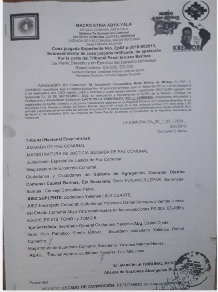 Tribunal Nacional Ecay Intirriati Alianza de naciones aborigenes…