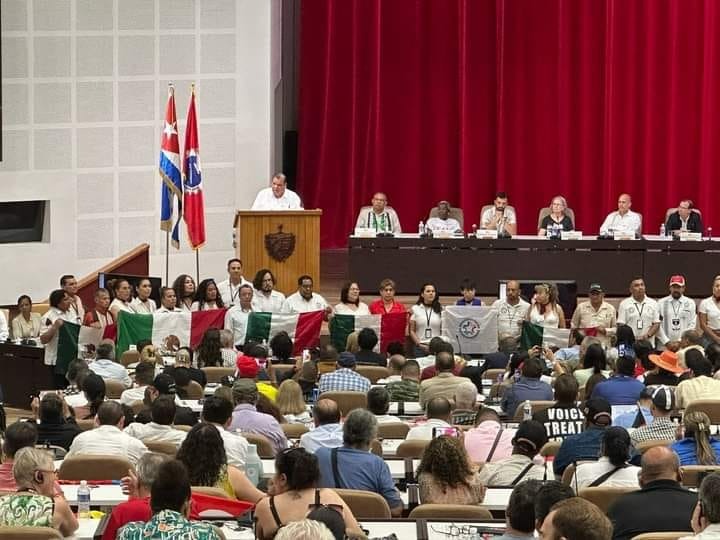 En la foto tomada en el Palacio de las Convenciones de La Habana, se puede apreciar la participación del secretario general de la CTSM y los sindicalistas mexicanos con la Bandera Nacional al frente, mientras en el fondo escuchan atentamente, delegados internacionales y ahí estuvo el presidente de Cuba, Díaz-Canel. Jorge Alfredo Muñoz, secretario general del Sindicato Amoxtli de las Alcaldías de CDMX, emocionado dijo a este corresponsal, que el sindicalismo aún tiene “una deuda muy grande con la sociedad”. Este viaje sirve para apoyar a Cuba contra el “criminal bloqueo de Estados Unidos”, que afecta por igual a niños y adultos. También nos manifestamos, en este Encuentro Mundial, contra el sionismo de Israel que está llevando acabo un genocidio en la franja de Gaza, donde mueren niños, mujeres que ni están en el conflicto. Hay que recordar que Gaza ha sido destruida por los cotidianos bombardeos. Venimos a reafirmar, sentenció la “dignidad humana, la dignidad laboral”. Parafraseando al Che dijo: hasta la victoria siempre o como dice Amoxtli: “Hasta que la dignidad laboral se haga costumbre”.