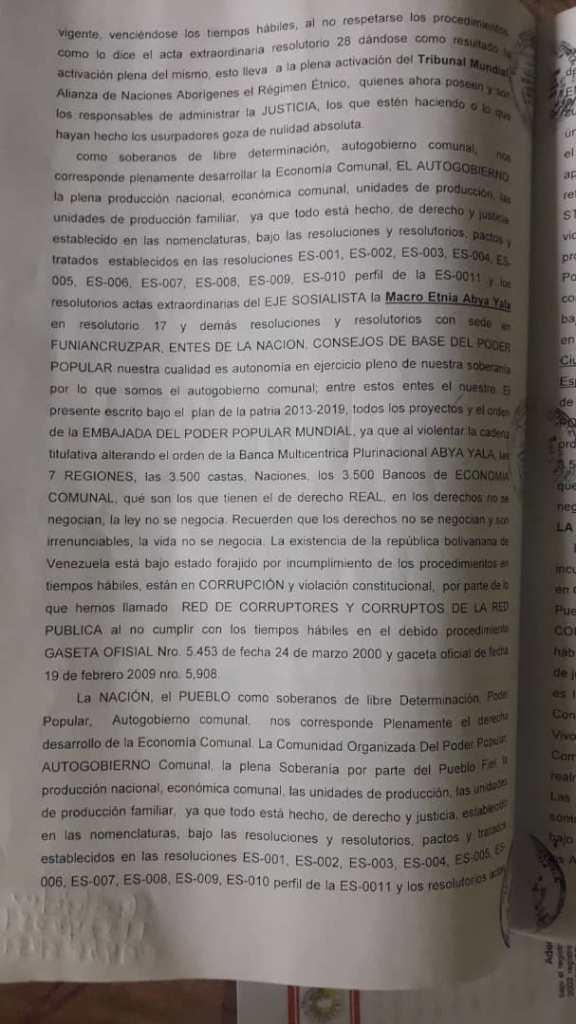 ES-005 y ES-010, Autogobierno. ES EL TIEMPO. PODER POPULAR Maxima y Suprema Jerarquia Sustentada en los articulos 1, 2, 5,9,70,126 la C.R.B.V y la Jurisdiccion de Justicia y Paz Comunal, el PUEBLO Libre Soberano MACRO ETNIA ABYA YALA.