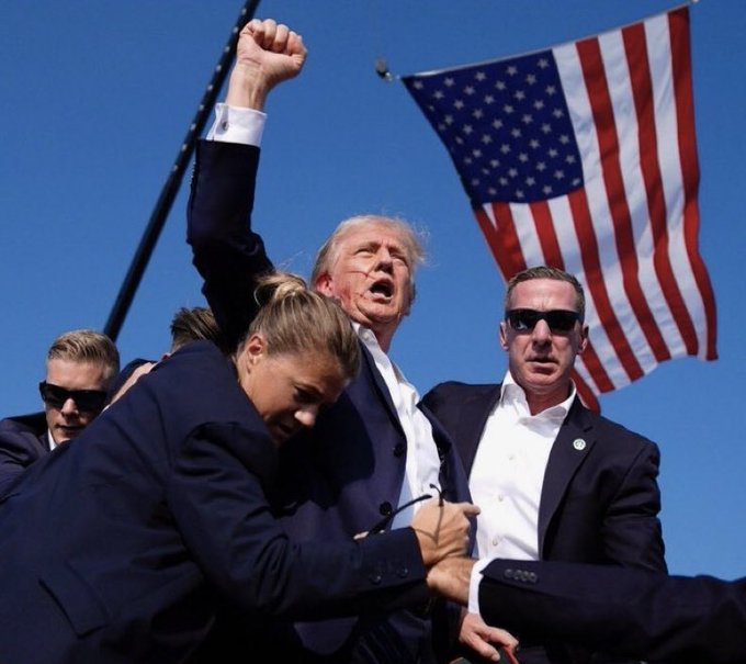 Un caluroso día en Butler Pensilvania, un mitin del candidato favorito a la presidencia a Estados Unidos; todo transcurre en relativa paz. En un letrero al fondo se lee: “Estas despedido Joe Biden”. De repente se comienzan a escuchar varias detonaciones, solo puede ser un arma de fuego; Donald Trump se toca la cabeza a la altura de la oreja derecha y parece incrédulo, pero al escuchar más detonaciones temeroso se dobla hacia el suelo mientras los agentes llegan a cubrirlo con bastante lentitud.