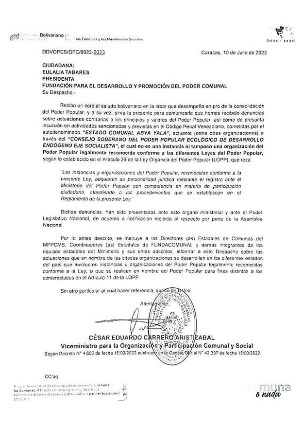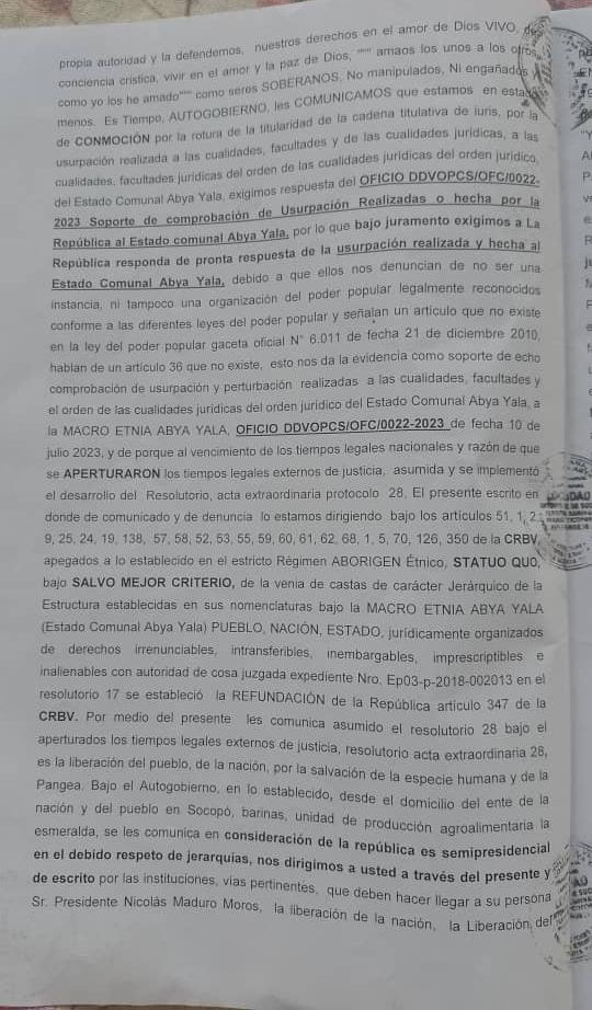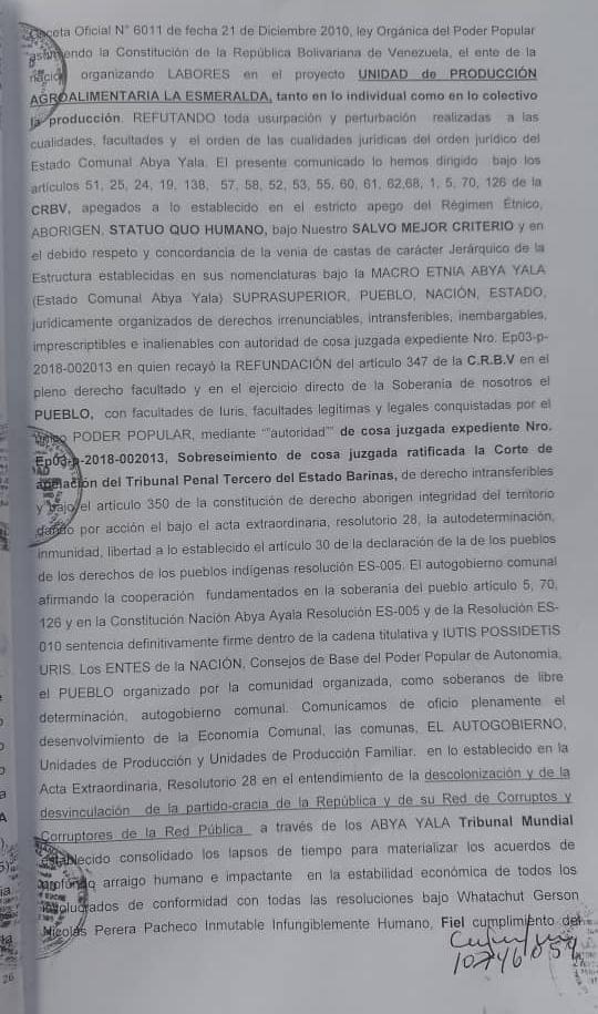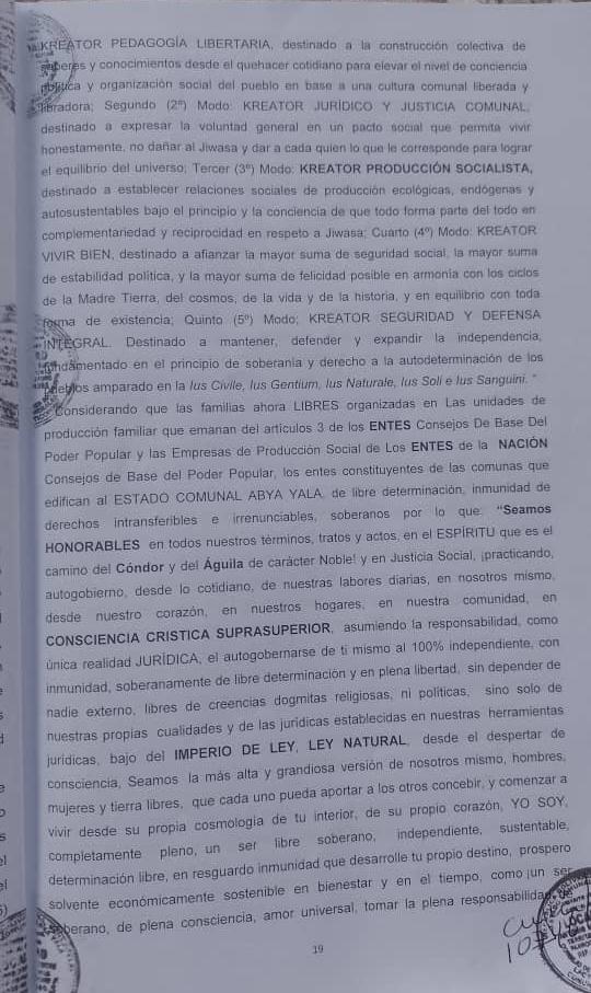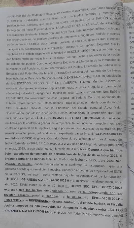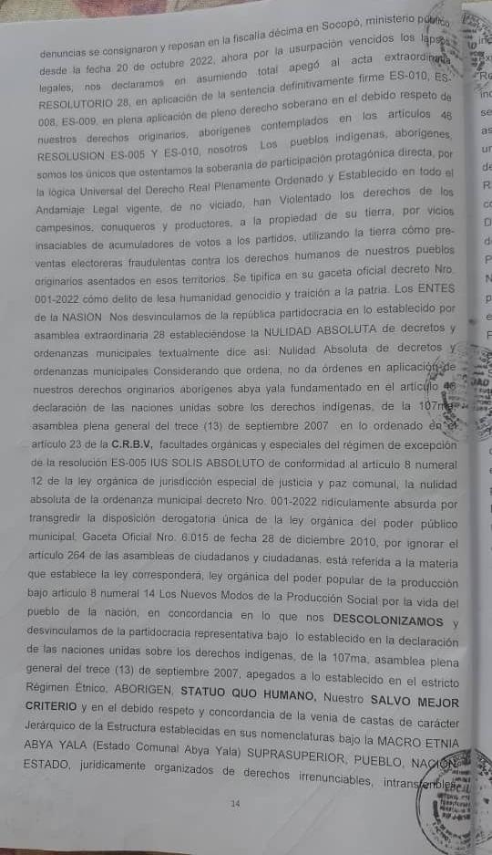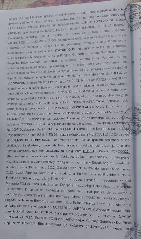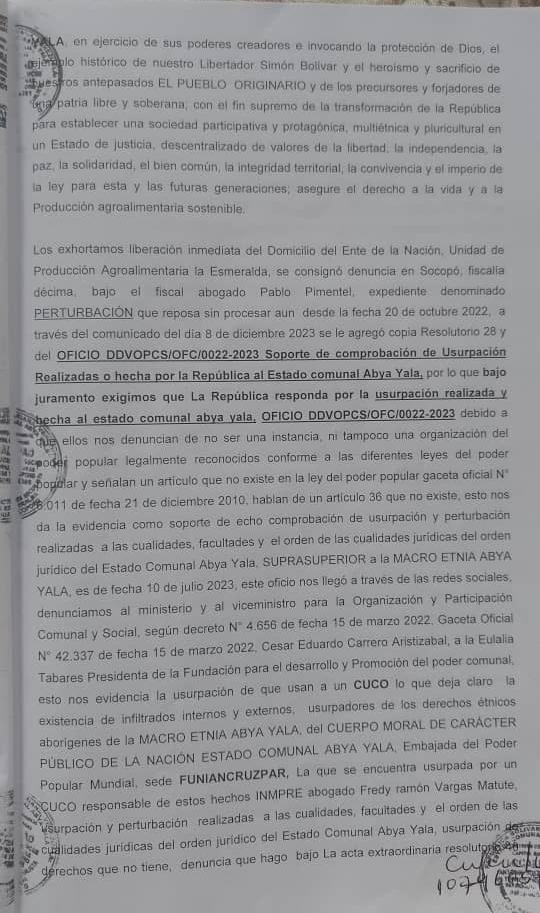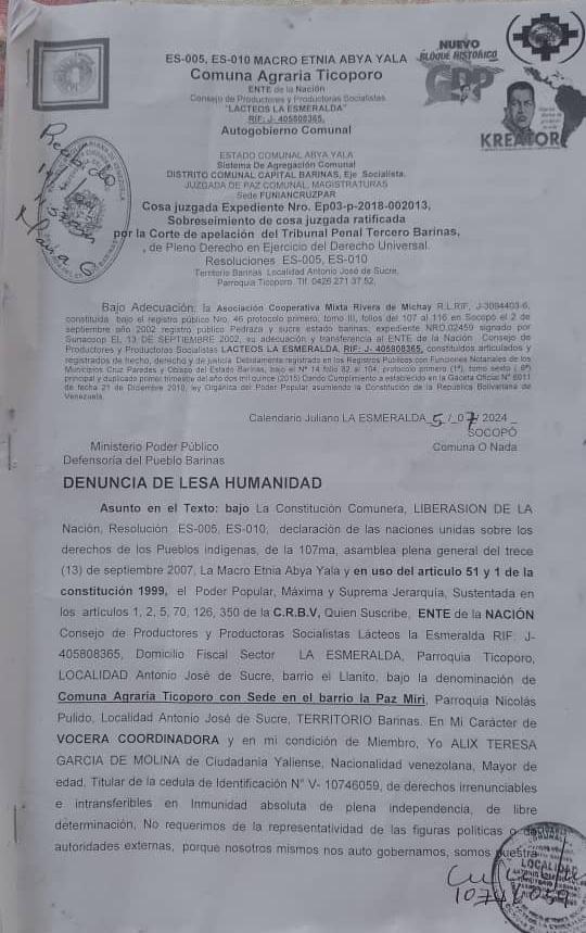 Denuncia de Lesa Humanidad del Estado Comunal Abya Yala