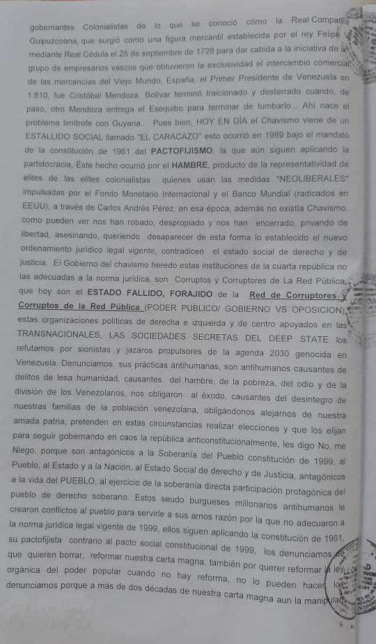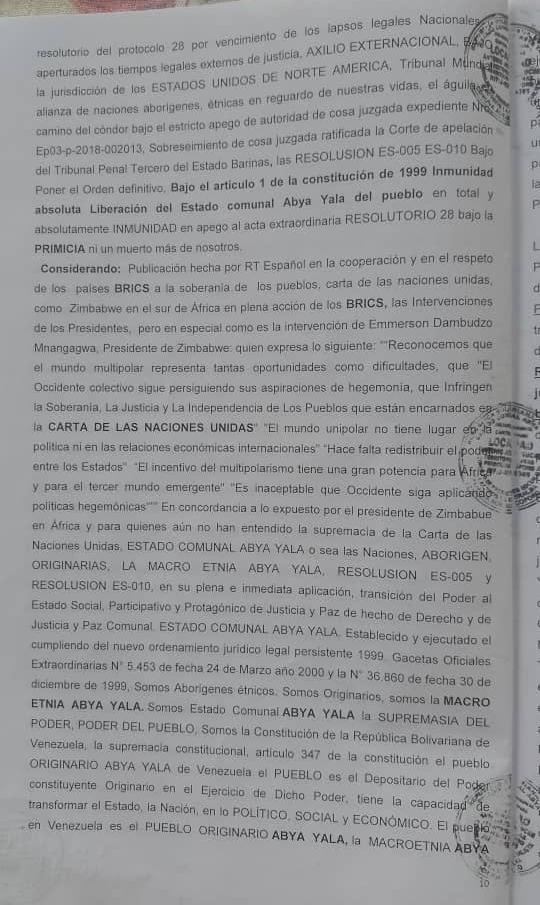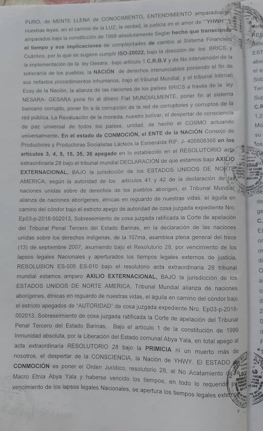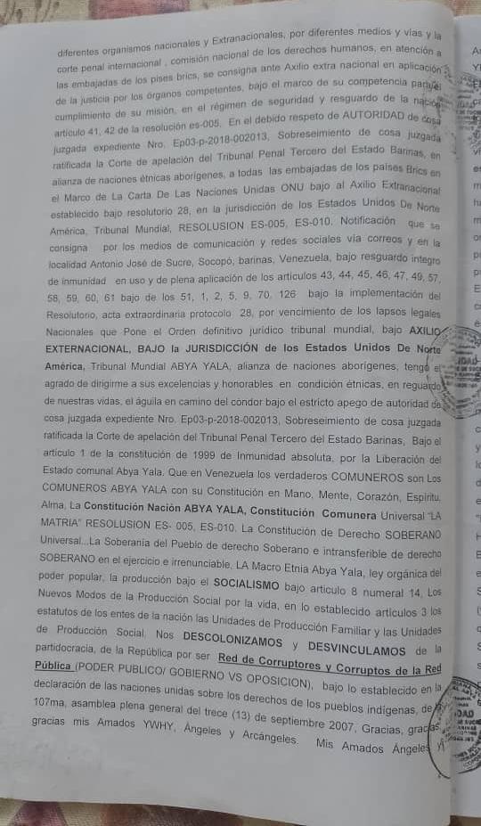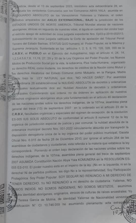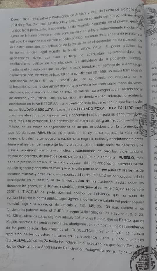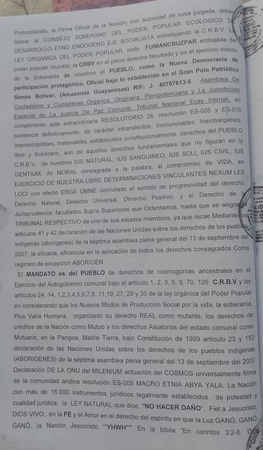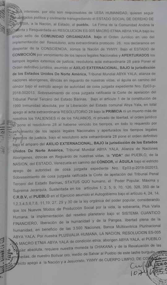 Testimonio de la denuncia de Lesa Humanidad, asumiendo el Exilio Extranacional, en lo establecido Acta Extraordinaria Resolutorio de Protocolo 28, Bajo La Constitucion de las COMUNAS ES-005, ES-010