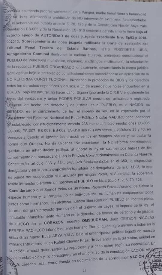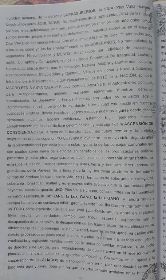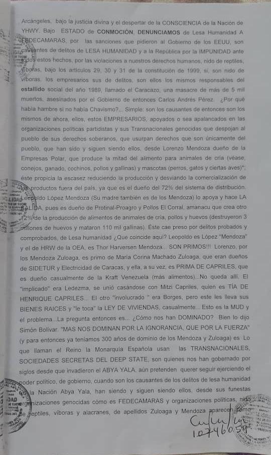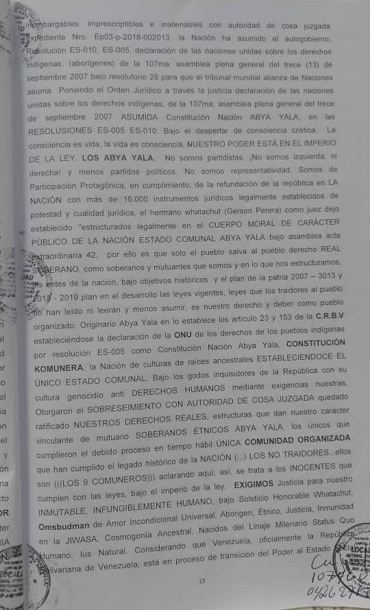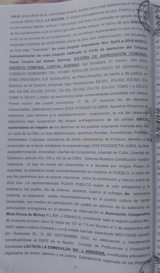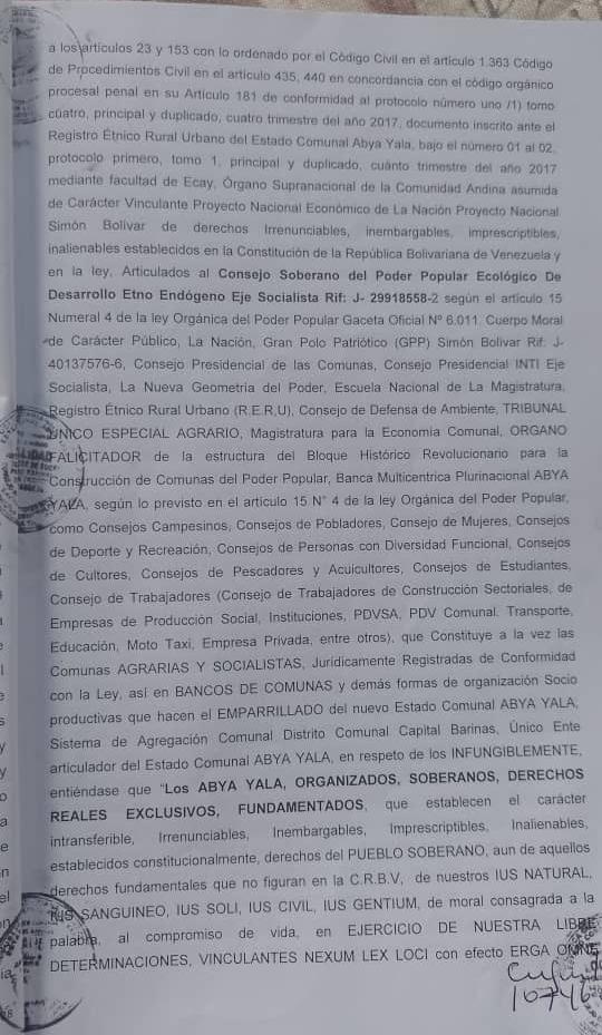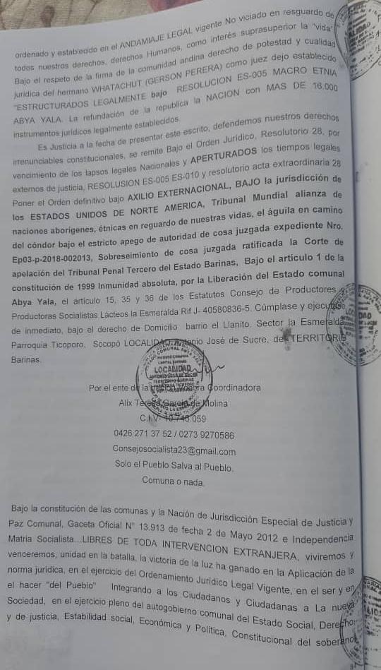 Testimonio de la denuncia de Lesa Humanidad, asumiendo el Exilio Extranacional, en lo establecido Acta Extraordinaria Resolutorio de Protocolo 28, Bajo La Constitucion de las COMUNAS ES-005, ES-010