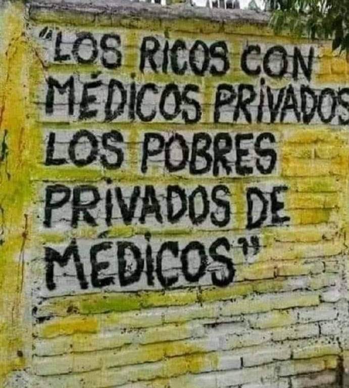 «Los ricos con médicos privados y los pobres privados de médicos», frase reivindicativa de las campañas mitineras del PSOE (Partido Socialista Obrero Español), expertos en malabarismos lingüísticos, con delirios de grandeza y corruptos por naturaleza.