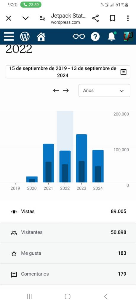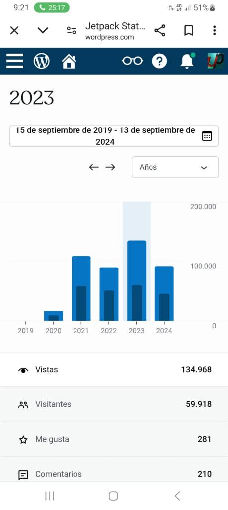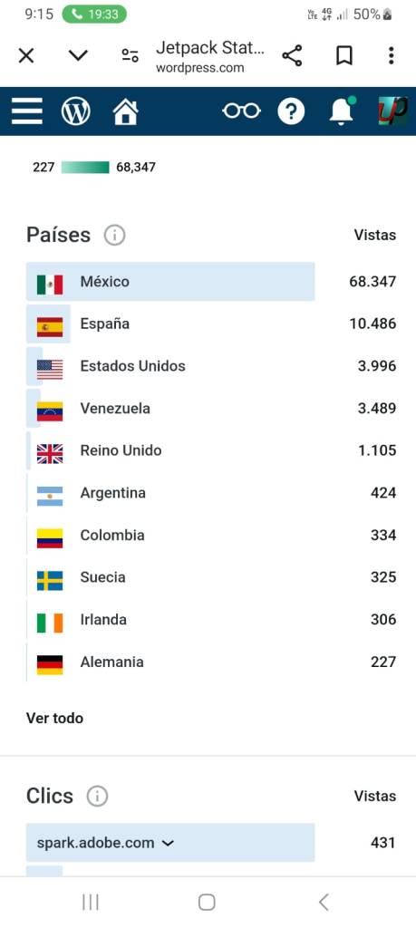 Así estamos y somos la página independiente que ha traspasado fronteras, todas las barreras y obstáculos del tiempo y el espacio. Hemos aportado nuestra obra artística y cultural, a través de entrevistas, presentaciones de libros, para que en esa difusión tengamos el crecimiento que hoy podemos sumar. Más de 500,000 (quinientas mil o medio millón) de visitas y vistas, completamente comprobadas a través del sitio verificado por Word Press. Aquí les muestro nuestra estadística, desde México, Latinoamérica y el Continente Europeo.