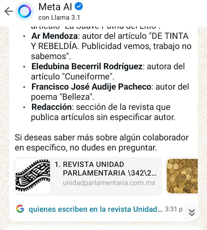 También la Inteligencia Artificial, a través de los canales de redes sociales, reconocen el profundo trabajo que se realiza día con día, gracias a nuestros visitantes y lectores.