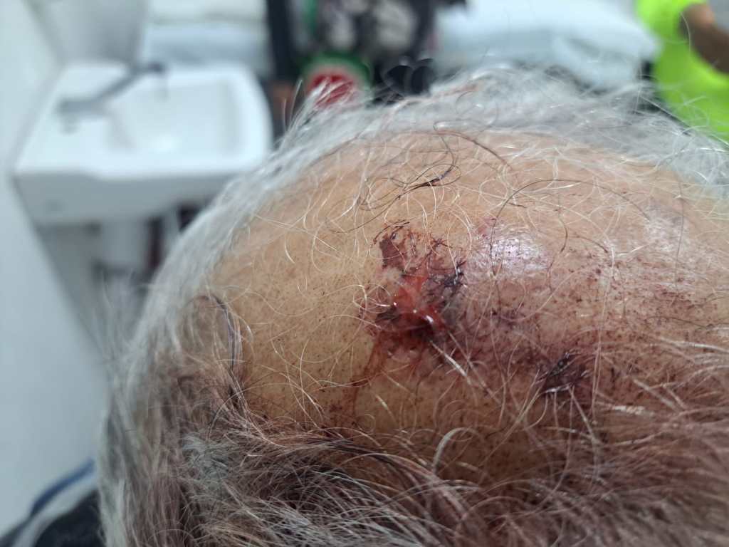 Los compañeros de este hombre de la tercera edad aseguraron que el agresor pertenece a un grupo de pro sionistas (posiblemente solo sirvientes o choferes), que pretenden acallar constantemente las protestas.