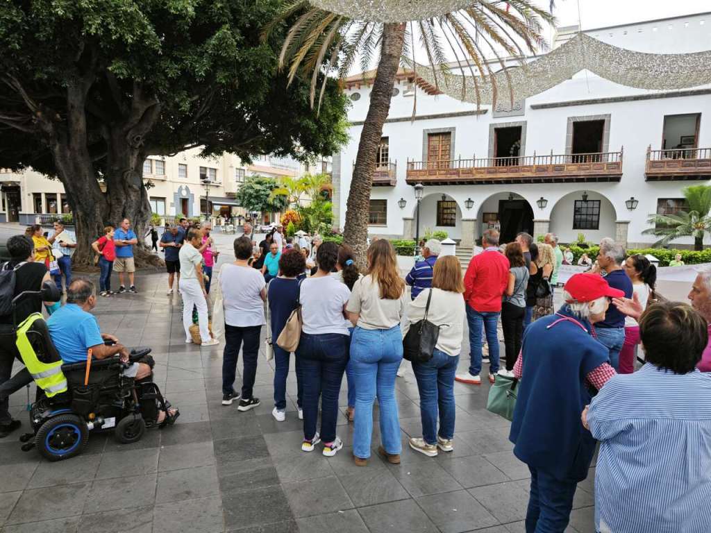 En este acto en la plaza de La Laguna estuvieron presentes entre el público el presidente del Cabildo palmero, Sergio Rodríguez, y el alcalde de Los Llanos, Javier Llamas, quien también salió a las puertas del Ayuntamiento durante algunos minutos en la concentración que tuvo lugar en la plaza de España, aunque sin acercarse a los participantes.