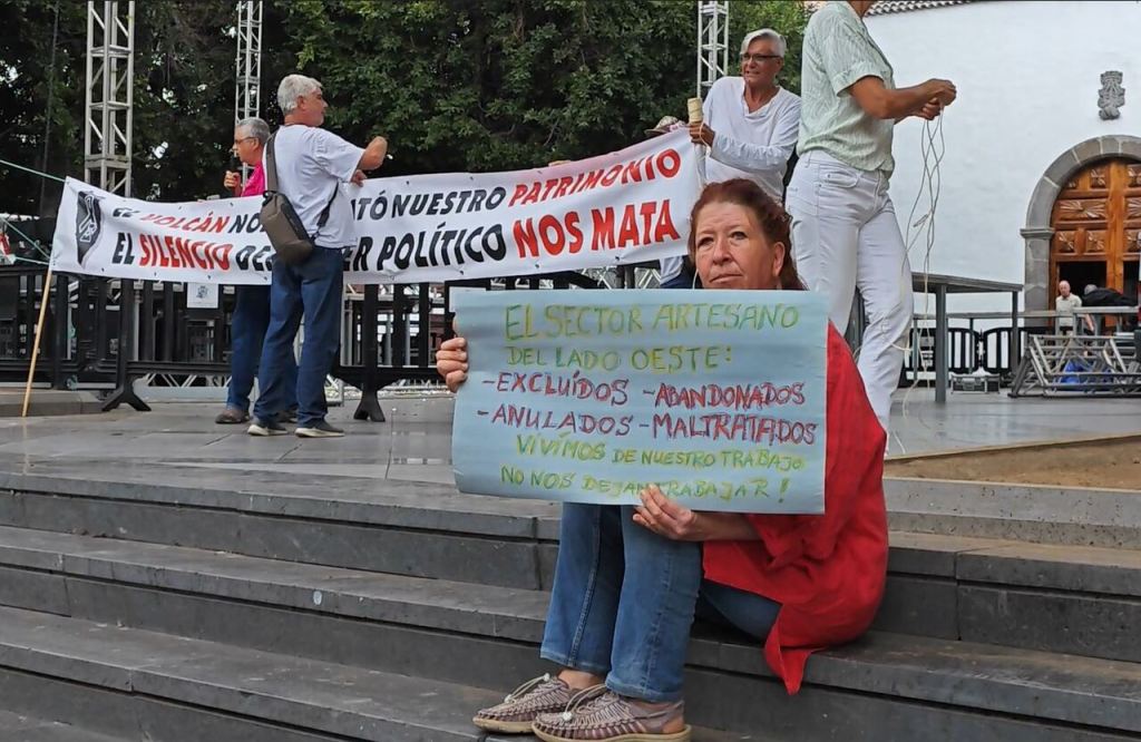 Igualmente, se escucharon quejas de propietarios de terrenos con viviendas situadas muy próximas al volcán Tajogaite, en la zona de Las Manchas, así como un desesperado llamamiento de artesanos que vendían sus productos en la zona destruida por el volcán, debido a las dificultades para retomar su actividad.