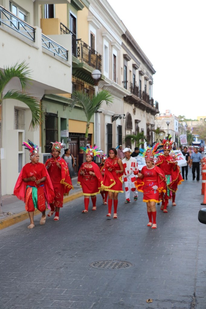 Un pequeño pero escandaloso grupo de artistas, danzantes indígenas, músicos, malabaristas y zanqueros recorrimos las calles del Centro Histórico de Mazatlán: