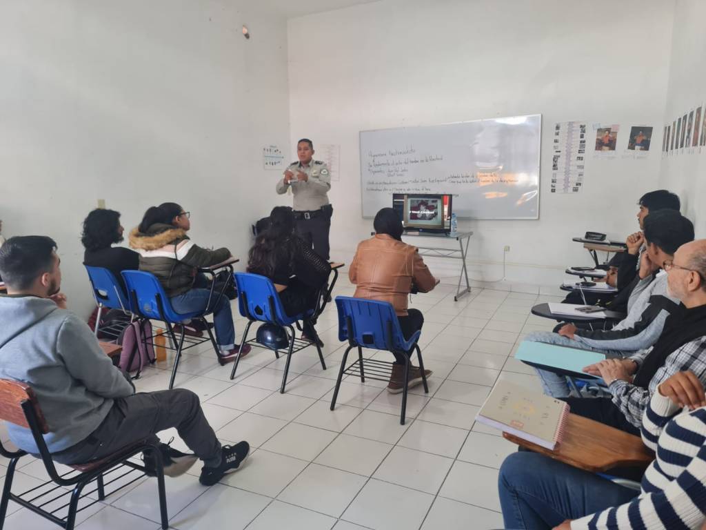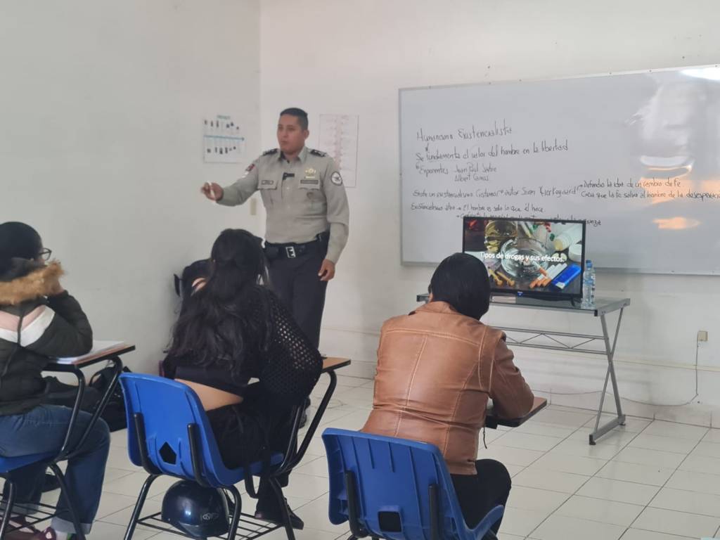 Oficiales de la *GUARDIA NACIONAL visitaron la Universidad Nacional Obrera, para dar una plática sobre la prevención de las adicciones, siendo del agrado del alumnado de la UNO quienes manifestaron que ese tipo de platicas son necesarias para fortalecer su preparación para ser mejores profesionistas y dar un servicio completo para la sociedad, solicitando a la dirección general que realice más actividades informativas y de prevención.