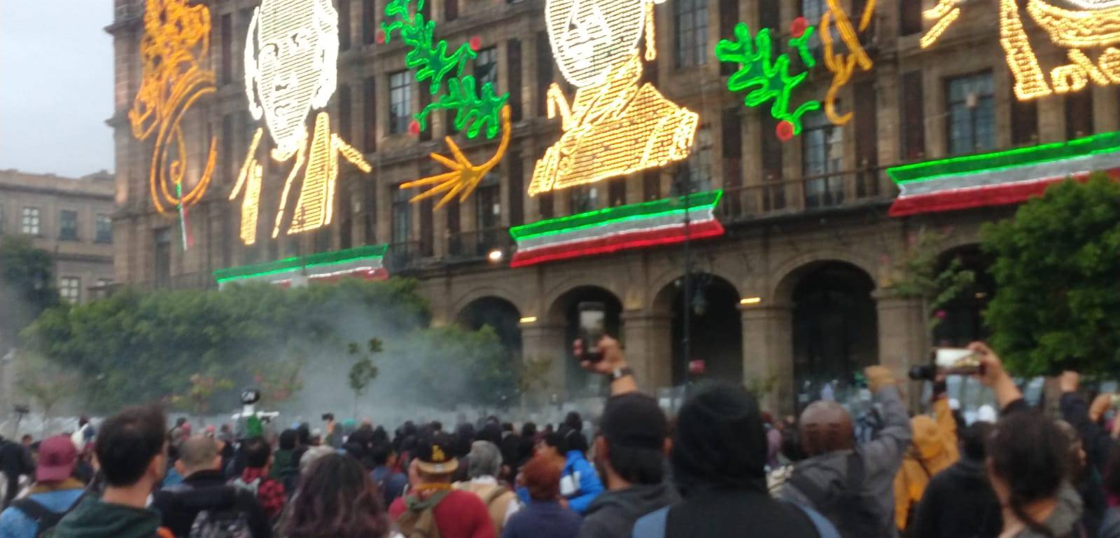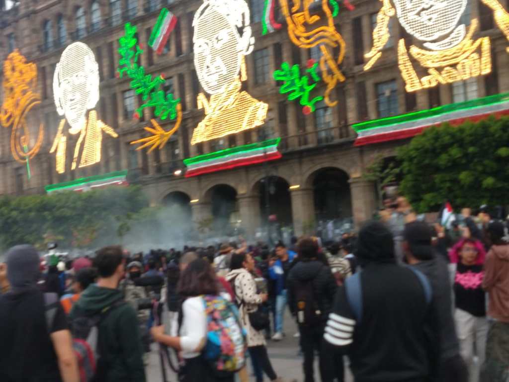 A lo largo del recorrido el Bloque Negro hizo destrozos y explanada del Zócalo se enfrentó a la policía capitalina arrojaron piedras, palos y hasta encendieron una fogata.