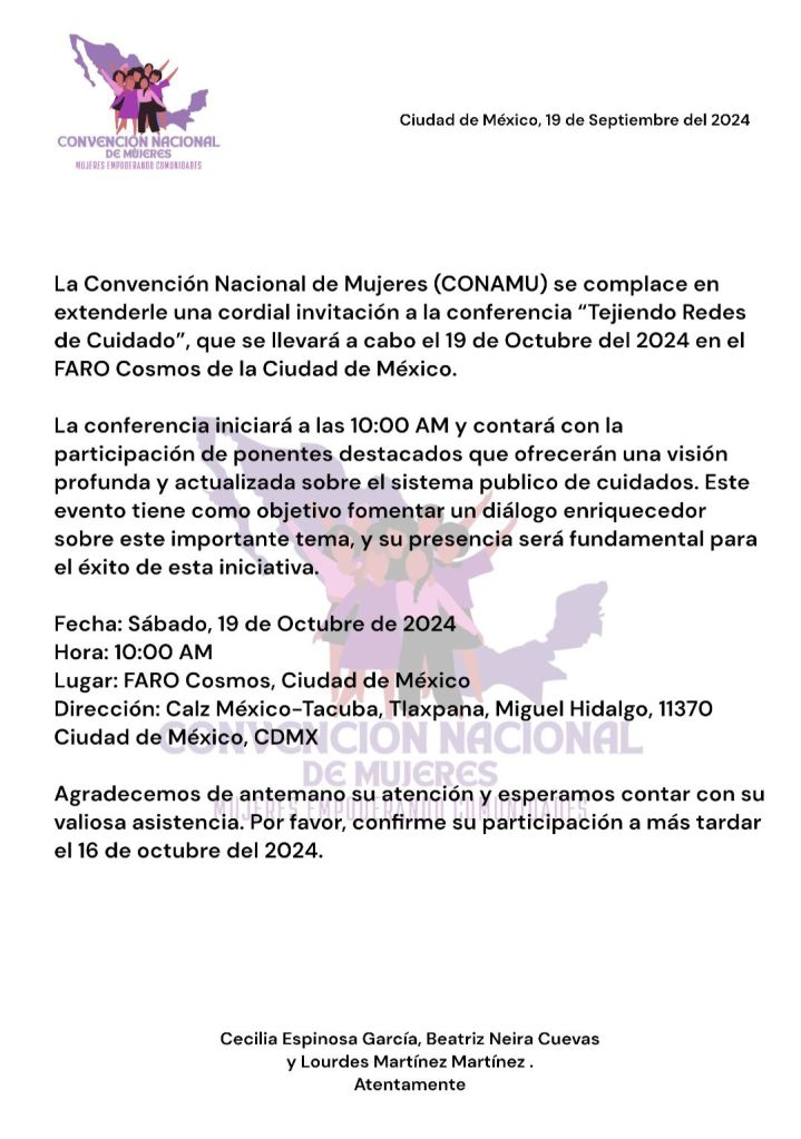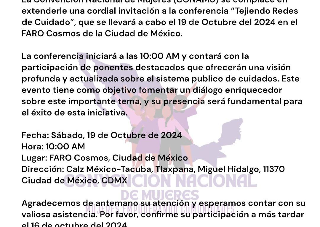 Convención Nacional de Mujeres (CONAMU) próximo 19 de octubre