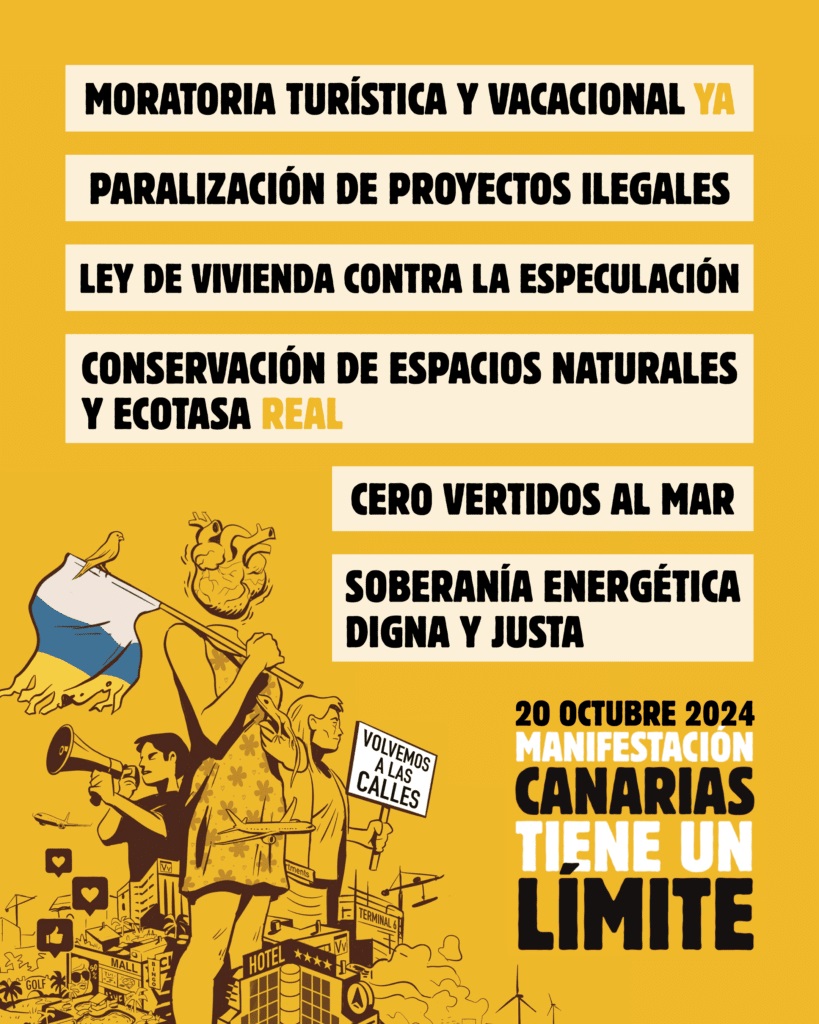 Por ello, hoy domingo 20 de octubre de 2024, saldremos a la calle de nuevo a defender lo que realmente a todos los canarios nos lo están destruyendo.