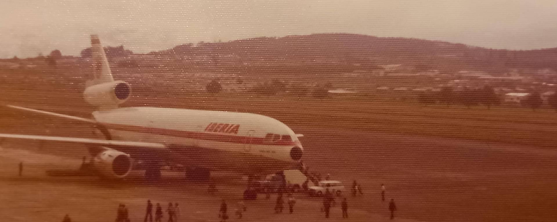 Cuando el autobús del aeropuerto nos dejó al lado de aquel monstruo volador, todavía caminaba con tedio, y con los ojos cargados de somnolencia. Solo reaccioné, cuando iba subiendo la escalerilla del avión, y ante mis ojos infantiles se mostraba enorme y potente, uno de los tres motores de aquel DC-10-30 de Iberia, con destino a Quito, previa escala en Caracas y Bogotá.
