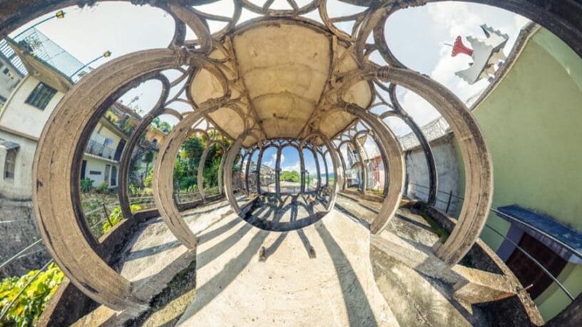 “La jaula de aire”, Fotografía de Carlos Adampol Galindo, Ciudad de México. Un ave que mira desde dentro se pregunta, ¿es esta jaula una esfera o un rectángulo? La pregunta es una puerta y un enigma a la locura que Edward James nos ofrece al entrar en su jardín bajo el riesgo de que aun cuando el cuerpo salga de ahí, la mente no lo podrá hacer jamás.